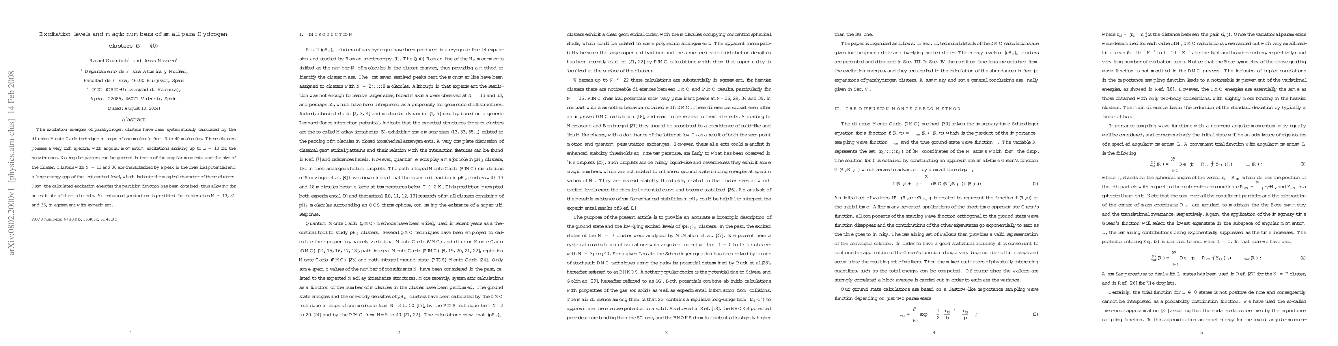Researchers calculated excitation energies of small para-Hydrogen clusters up to 40 molecules using Monte Carlo technique, finding magical properties in clusters of sizes N=13 and 36 that predict enhanced production.