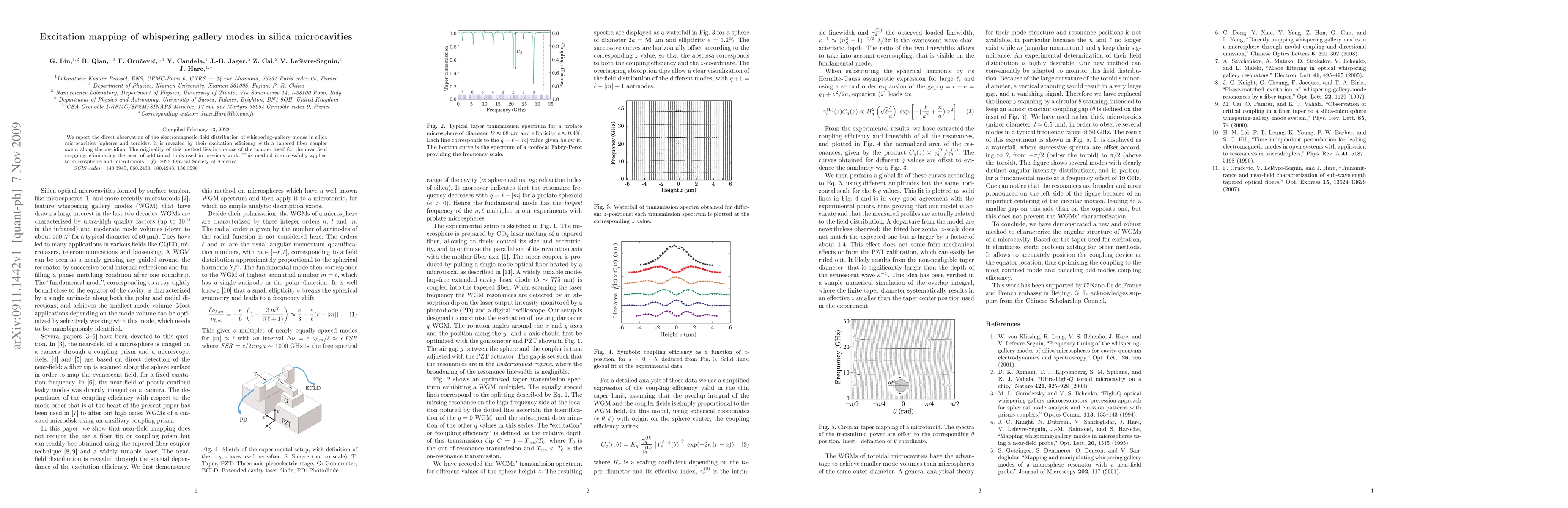 We report the direct observation of the electromagnetic-field distribution of whispering?gallery modes in silica microcavities (spheres and toroids). It is revealed by their excitation efficiency with a tapered fiber coupler swept along the meridian. The originality of this method lies in the use of the coupler itself for the near field mapping, eliminating the need of additional tools used in previous work. This method is successfully applied to microspheres and microtoroids