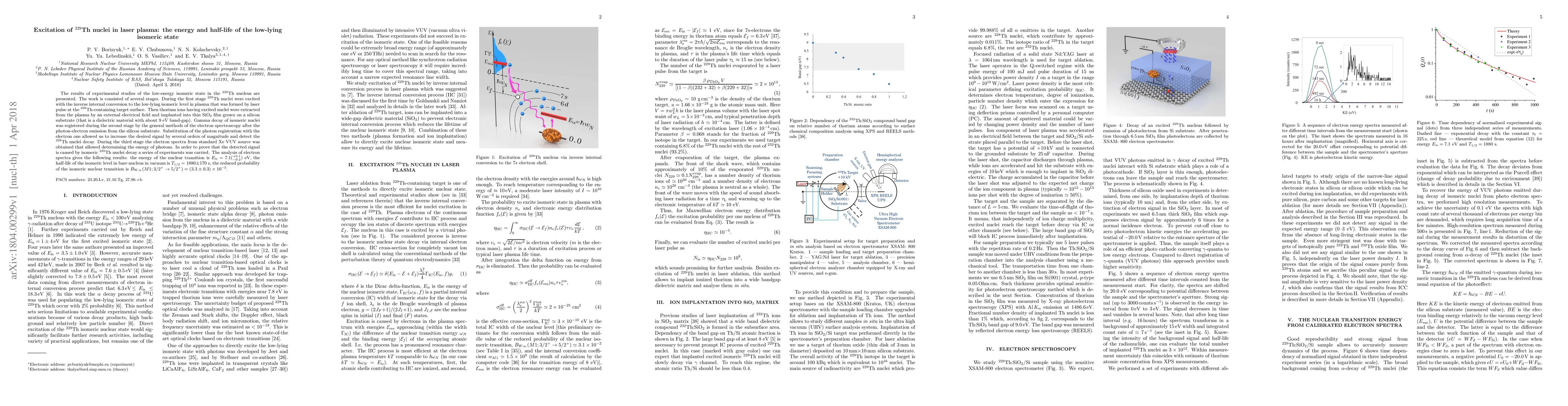 Researchers successfully excited $^{229}$Th nuclei in laser plasma and detected their decay, revealing an energy of 7.1 eV and a half-life of 1880 seconds for the low-lying isomeric state.