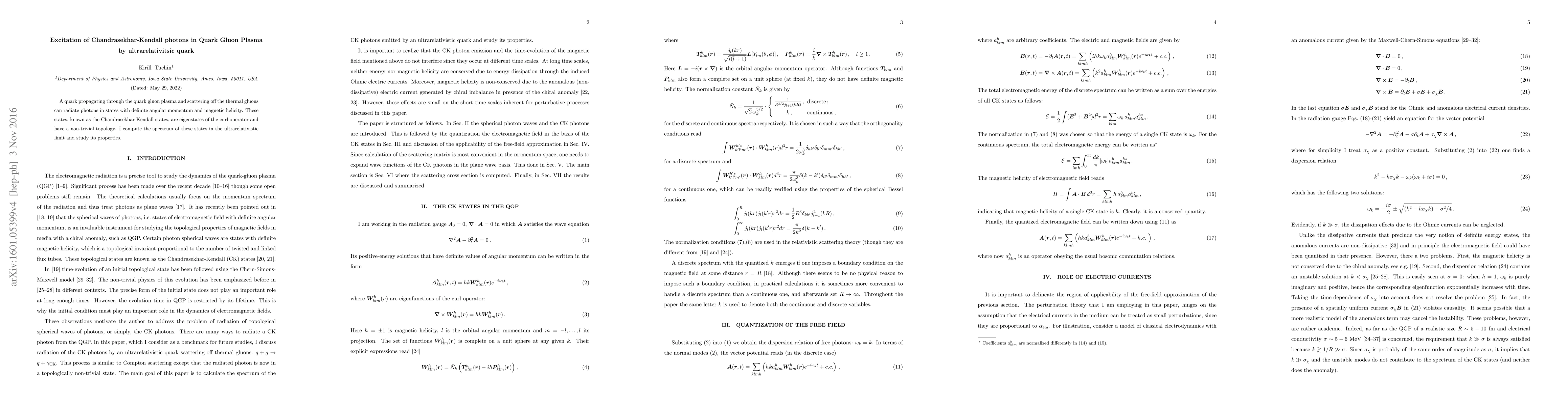 A quark propagating through the quark gluon plasma and scattering off the thermal gluons can radiate photons in states with definite angular momentum and magnetic helicity. These states, known as the Chandrasekhar-Kendall states, are eigenstates of the curl operator and have a non-trivial topology. I compute spectrum of these states in the ultrarelativistic limit and study its properties.