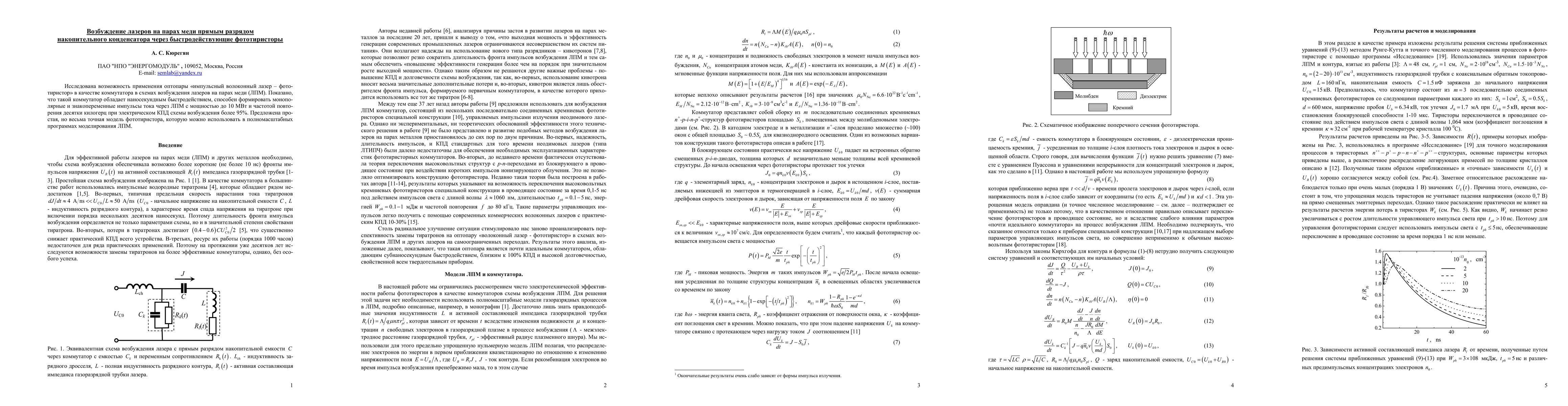 The possibility of using an optocoupler "pulsed fiber laser - photo thyristor" as a switch in excitation circuits of copper vapor lasers (CVL) is investigated. It is shown that such switch has a nanosecond speed, is able to pass monopolar or alternating current pulses through CVL with a power of up to 10 MW and a repetition rate of up to tens of kilohertz with an electric efficiency of excitation circuit of more than 95%. A simple but very accurate model of photo thyristor is proposed, which can be used in full-scale CVL modeling programs.
