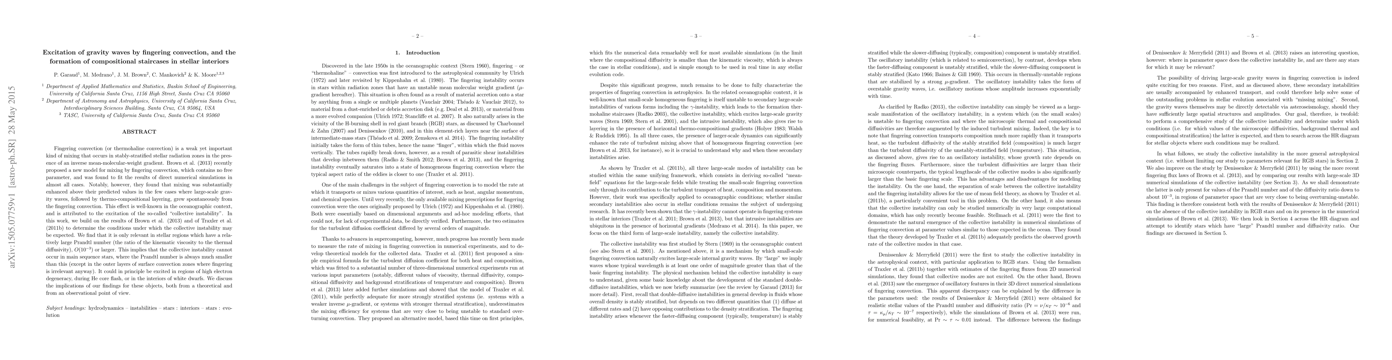 This paper investigates the excitation of gravity waves by fingering convection in stellar interiors, finding that the "collective instability" can significantly enhance mixing. It concludes that this phenomenon is relevant only in stellar regions with large Prandtl numbers, such as white dwarfs or during He core flashes, but not in main sequence stars.