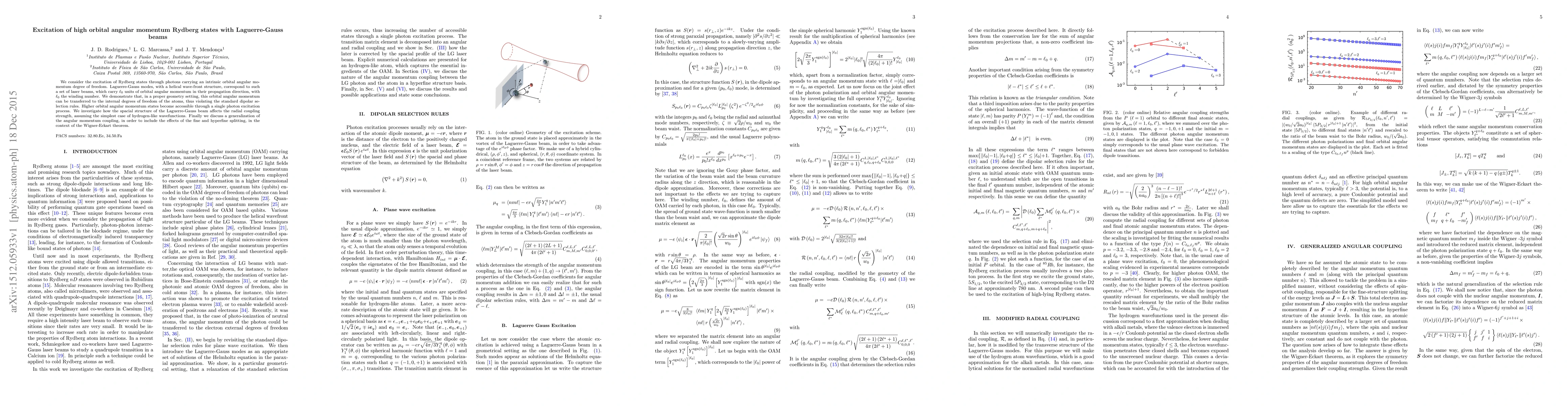 This paper explores the excitation of high orbital angular momentum Rydberg states using Laguerre-Gauss beams, demonstrating that these beams can transfer orbital angular momentum to atomic internal degrees, thus enabling the excitation of higher orbital states that typically violate dipolar selection rules. The study also examines the spatial structure's impact on radial coupling strength and discusses the generalization of angular momentum coupling considering fine and hyperfine splitting.