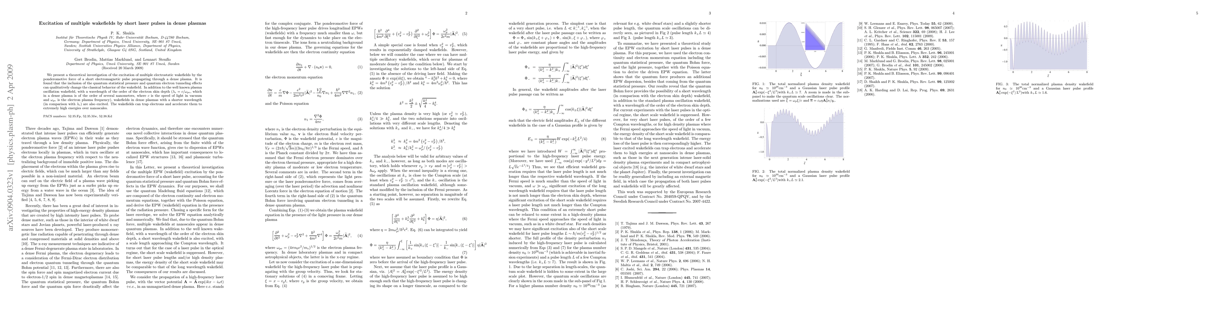 This paper investigates the excitation of multiple electrostatic wakefields in dense plasmas by short laser pulses, revealing that quantum effects can alter classical wakefield behavior. Additionally, it identifies the generation of wakefields with shorter wavelengths than the electron skin depth, capable of trapping electrons and accelerating them to high energies over nanometer scales.