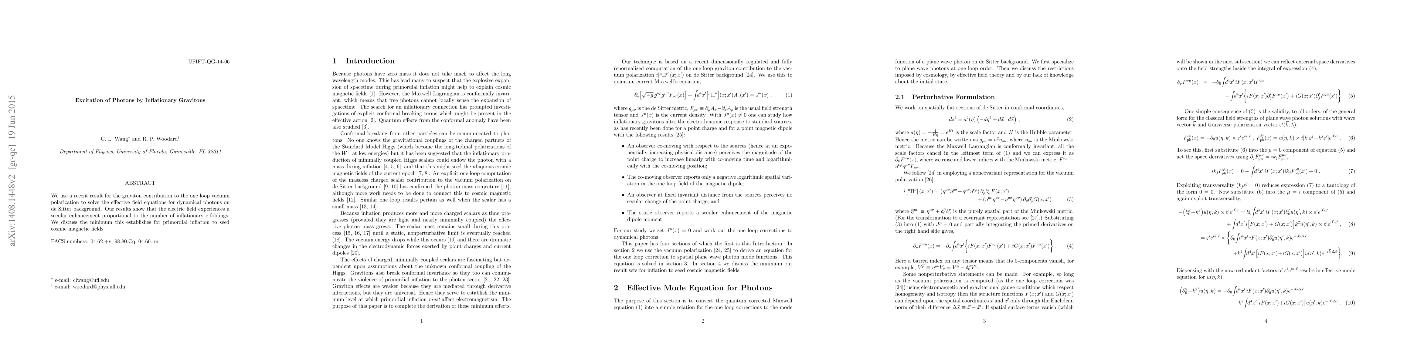 We use a recent result for the graviton contribution to the one loop vacuum polarization to solve the effective field equations for dynamical photons on de Sitter background. Our results show that the electric field experiences a secular enhancement proportional to the number of inflationary e-foldings. We discuss the minimum this establishes for primordial inflation to seed cosmic magnetic fields.