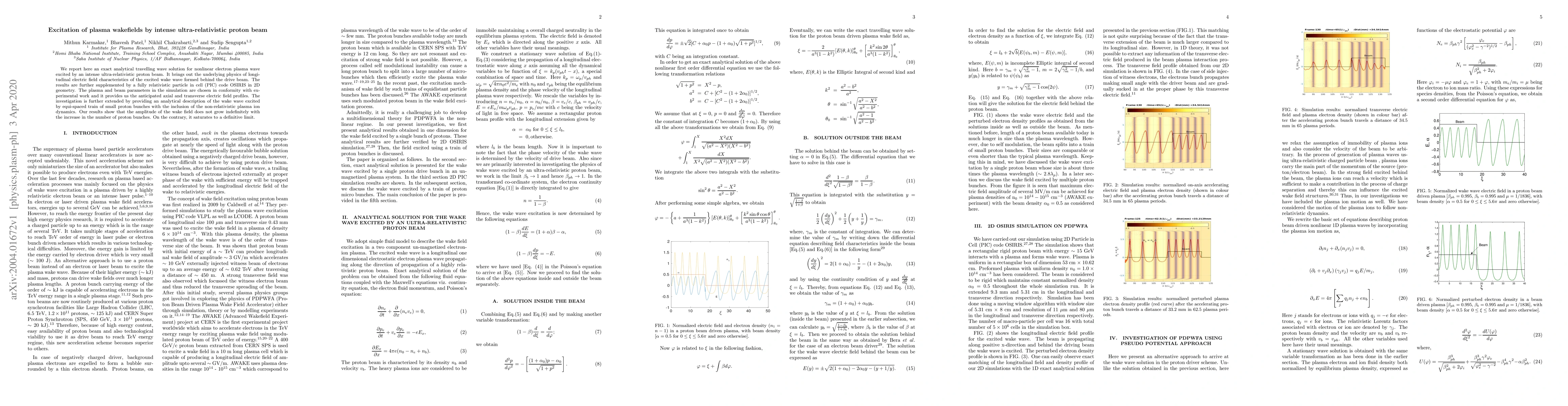 This paper presents an analytical solution for the wakefield excited by an intense ultra-relativistic proton beam in plasma, detailing the longitudinal electric field characteristics. Simulation results using a relativistic PIC code confirm the analytical findings and show that the wakefield amplitude saturates rather than growing indefinitely with more proton bunches.