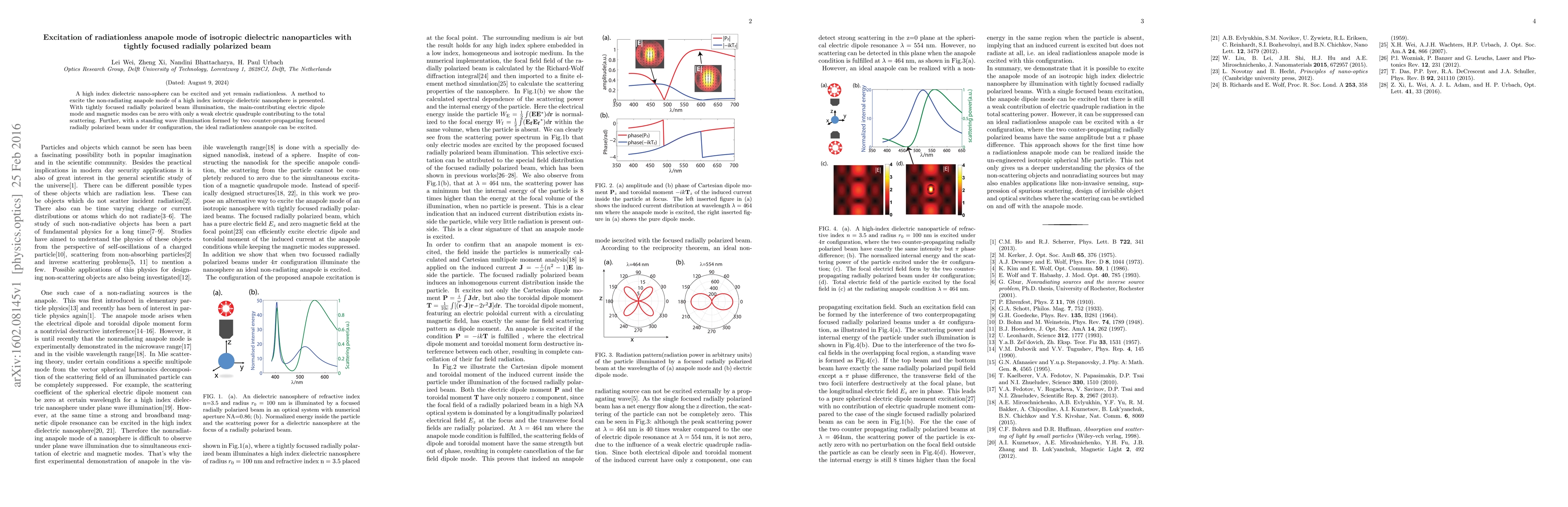 A high index dielectric nano-sphere can be excited and yet remain radiationless. A method to excite the non-radiating anapole mode of a high index isotropic dielectric nanosphere is presented. With tightly focused radially polarized beam illumination, the main-contributing electric dipole mode and magnetic modes can be zero with only a weak electric quadruple contributing to the total scattering. Further, with a standing wave illumination formed by two counter-propagating focused radially polarized beam under $4\pi$ configuration, the ideal radiationless ananpole can be excited.