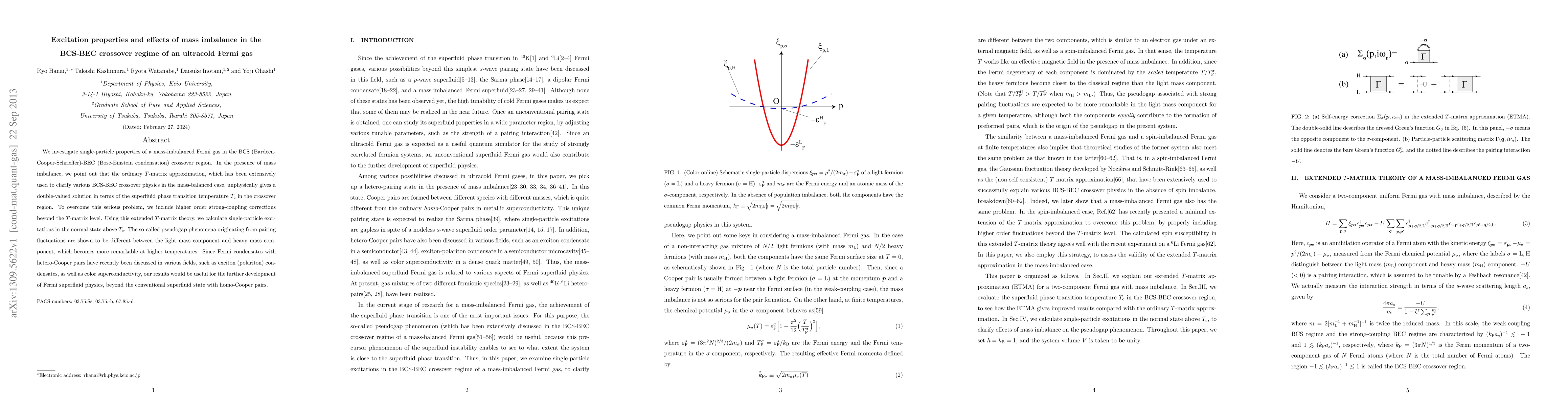 We investigate single-particle properties of a mass-imbalanced Fermi gas in the BCS (Bardeen-Cooper-Schrieffer)-BEC (Bose-Einstein condensation) crossover region. In the presence of mass imbalance, we point out that the ordinary $T$-matrix approximation, which has been extensively used to clarify various BCS-BEC crossover physics in the mass-balanced case, unphysically gives a double-valued solution in terms of the superfluid phase transition temperature $T_{\rm c}$ in the crossover region. To overcome this serious problem, we include higher order strong-coupling corrections beyond the $T$-matrix level. Using this extended $T$-matrix theory, we calculate single-particle excitations in the normal state above $T_{\rm c}$. The so-called pseudogap phenomena originating from pairing fluctuations are shown to be different between the light mass component and heavy mass component, which becomes more remarkable at higher temperatures. Since Fermi condensates with hetero-Cooper pairs have recently been discussed in various fields, such as exciton (polariton) condensates, as well as color superconductivity, our results would be useful for the further development of Fermi superfluid physics, beyond the conventional superfluid state with homo-Cooper pairs.