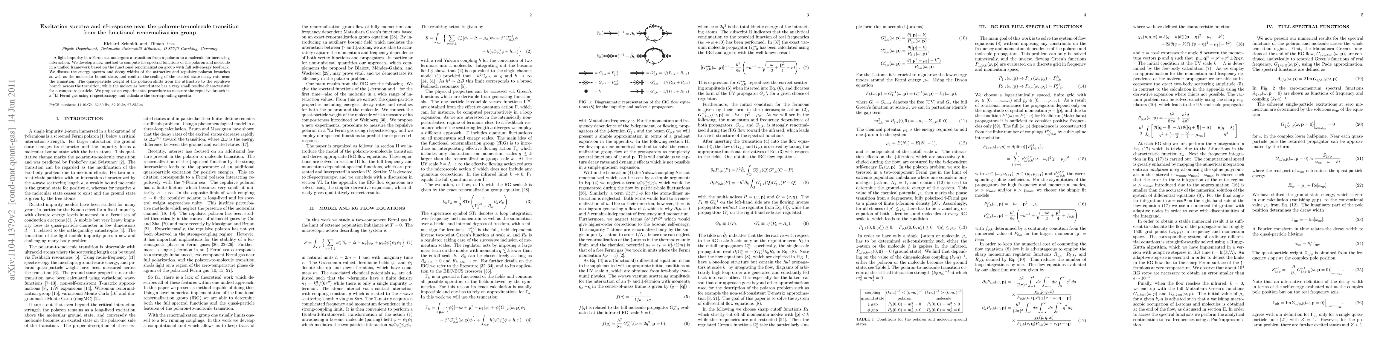 This study uses functional renormalization group to analyze the excitation spectra and RF-response of a light impurity transitioning from a polaron to a molecule in a Fermi sea, revealing distinct spectral behaviors and proposing an RF-spectroscopy method for experimental observation in Li6 Fermi gas.