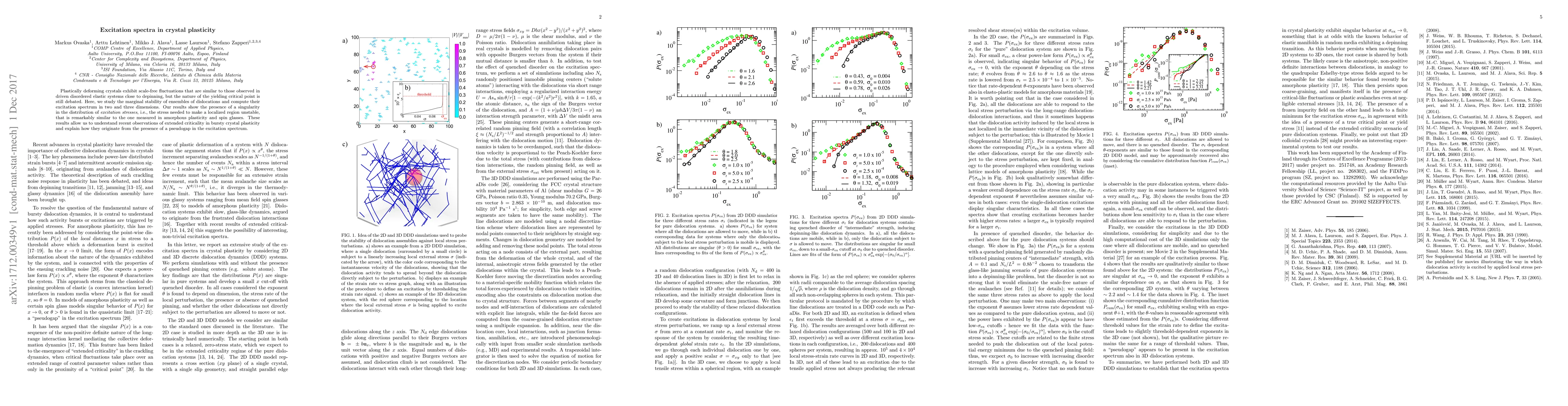 Researchers studied dislocation dynamics in crystals to understand scale-free fluctuations and yielding critical points. They found a singularity in excitation stresses similar to those in amorphous plasticity and spin glasses.