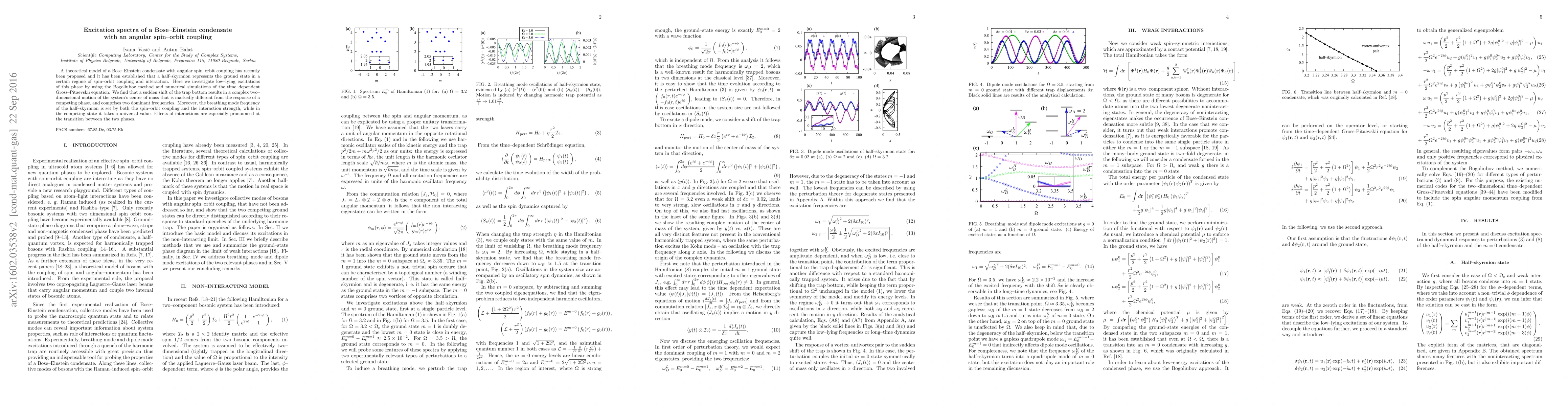 Researchers investigated low-lying excitations of a Bose-Einstein condensate with angular spin-orbit coupling, finding two dominant frequencies in its response to changes in trap conditions.