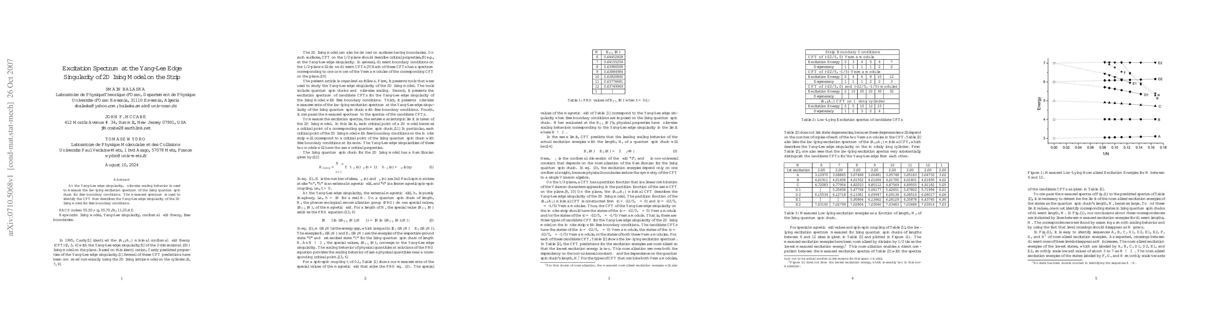 At the Yang-Lee edge singularity, finite-size scaling behavior is used to measure the low-lying excitation spectrum of the Ising quantum spin chain for free boundary conditions. The measured spectrum is used to identify the CFT that describes the Yang-Lee edge singularity of the 2D Ising model for free boundary conditions.