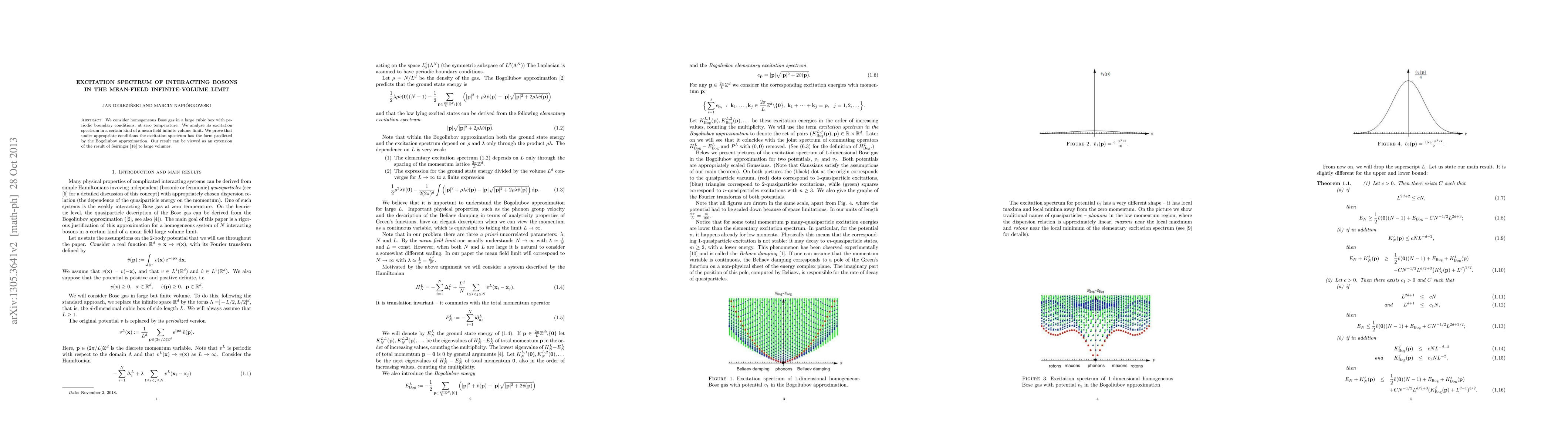 We consider homogeneous Bose gas in a large cubic box with periodic boundary conditions, at zero temperature. We analyze its excitation spectrum in a certain kind of a mean field infinite volume limit. We prove that under appropriate conditions the excitation spectrum has the form predicted by the Bogoliubov approximation. Our result can be viewed as an extension of the result of R. Seiringer (arXiv:1008.5349 [math-ph]) to large volumes.