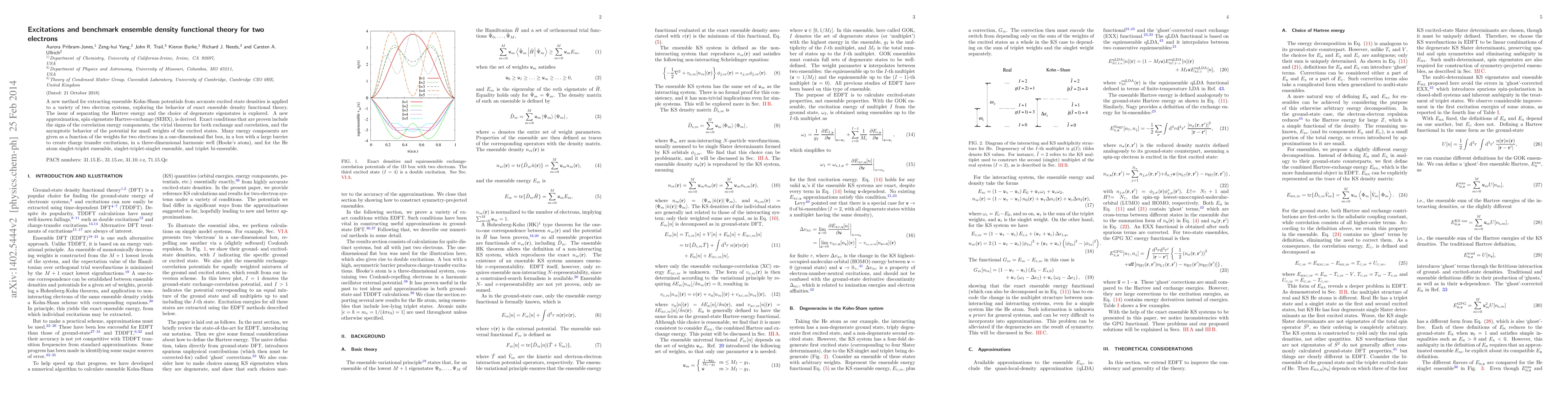 This paper introduces a novel method for deriving ensemble Kohn-Sham potentials from excited state densities, applying it to various two-electron systems. It proposes the spin eigenstate Hartree-exchange (SEHX) approximation and proves exact conditions including correlation energy signs and virial theorems, providing detailed energy components for different configurations.