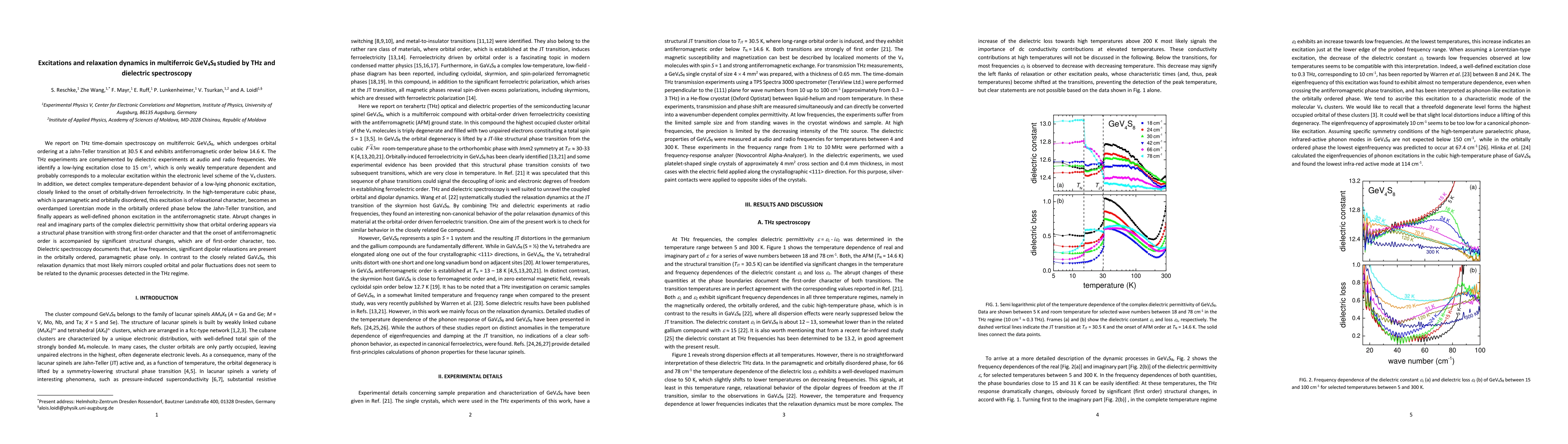 This study uses THz and dielectric spectroscopy to investigate the excitations and relaxation dynamics in multiferroic GeV4S8, revealing a low-lying phononic excitation linked to orbital ordering and ferroelectricity, and identifying significant structural changes accompanying the orbital and antiferromagnetic phase transitions.