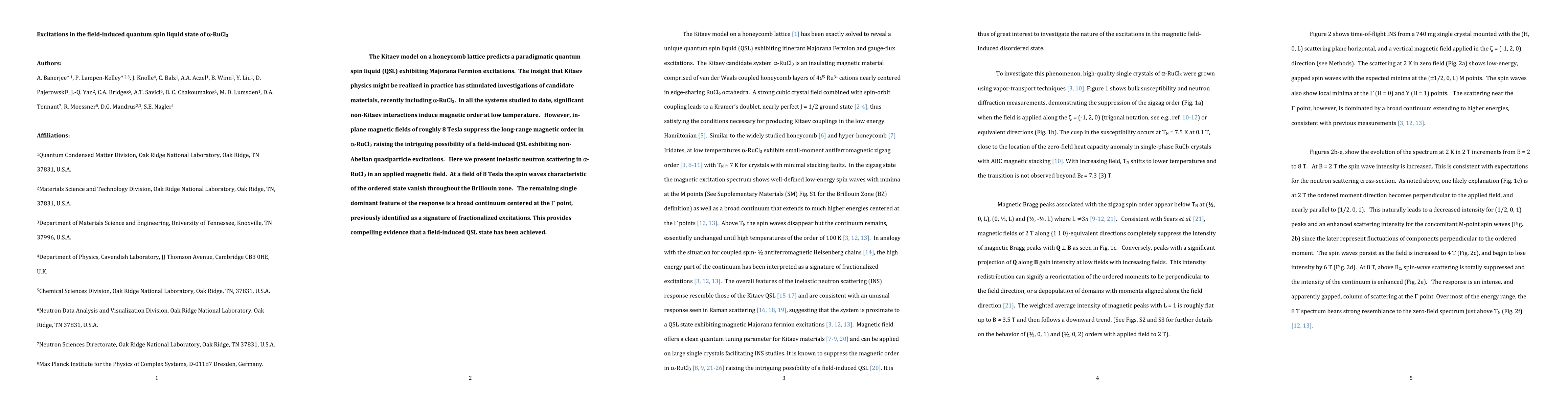 This paper reports on inelastic neutron scattering studies of alpha-RuCl3 under magnetic fields, revealing the suppression of spin waves and the emergence of a broad continuum indicative of fractionalized excitations, confirming the realization of a field-induced quantum spin liquid state.