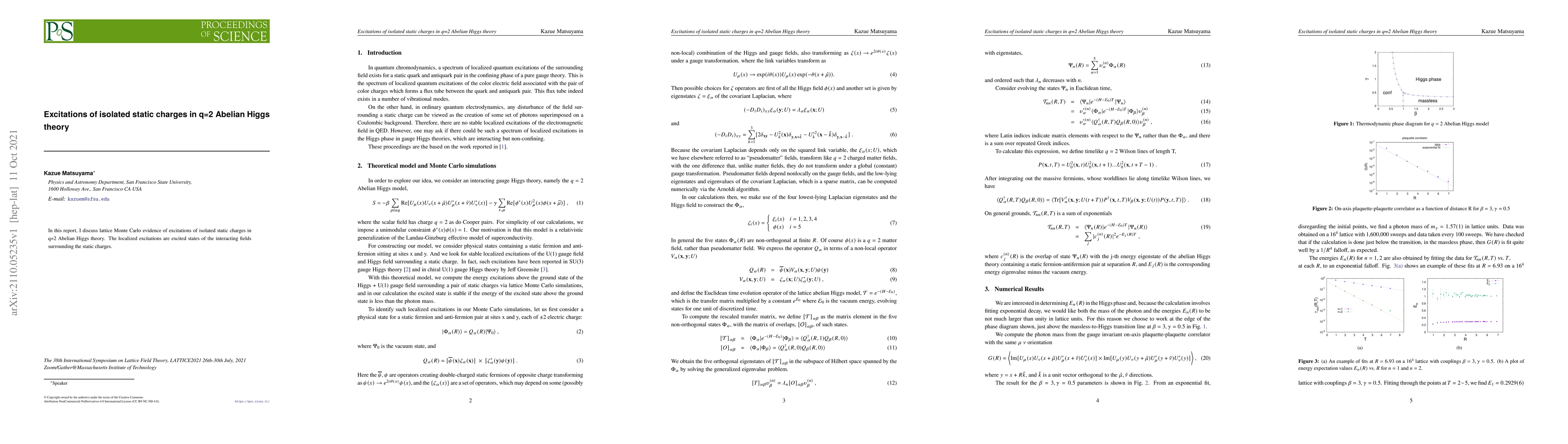 In this report, I discuss lattice Monte Carlo evidence of excitations of isolated static charges in q=2 Abelian Higgs theory. The localized excitations are excited states of the interacting fields surrounding the static charges.