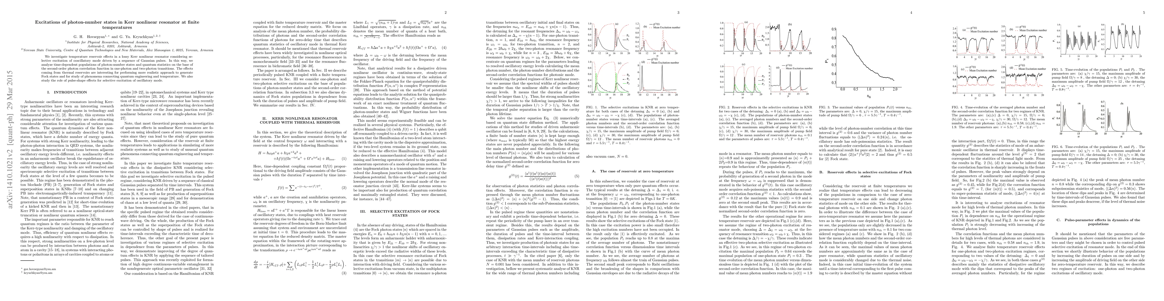This paper examines temperature-dependent effects in a Kerr nonlinear resonator driven by Gaussian pulses, focusing on the time-dependent populations of photon-number states and quantum statistics via second-order photon correlation functions. It highlights the significance of thermal reservoirs for generating Fock states and explores the impact of pulse-shaping on selective excitation.