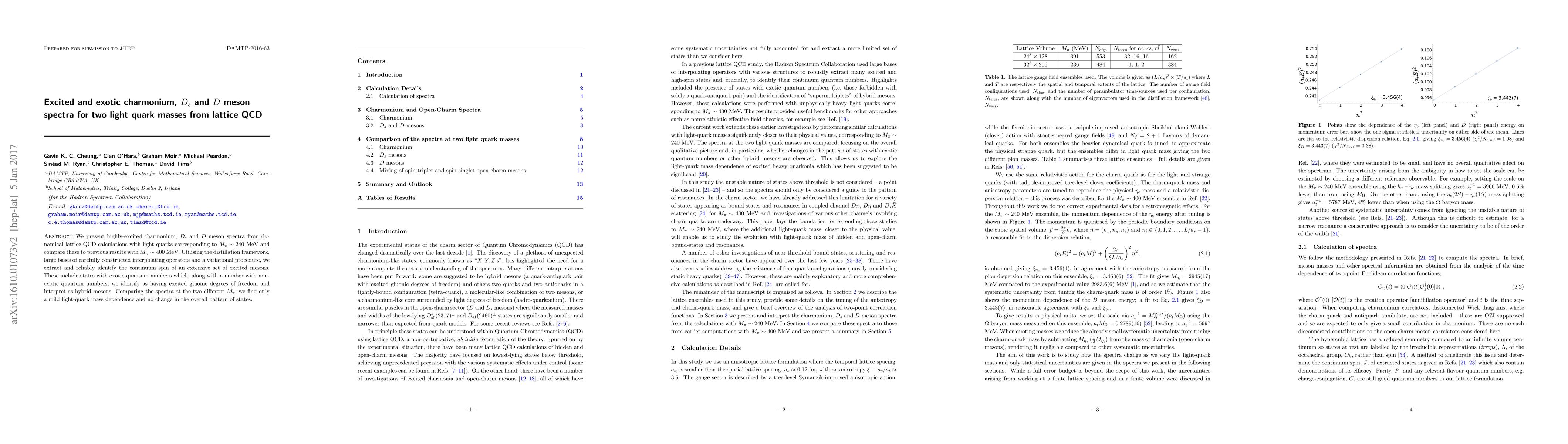 This paper presents lattice QCD calculations of charmonium meson spectra for two light quark masses, finding only a mild dependence on mass with no change in the overall pattern of states, including some exotic hybrid mesons.