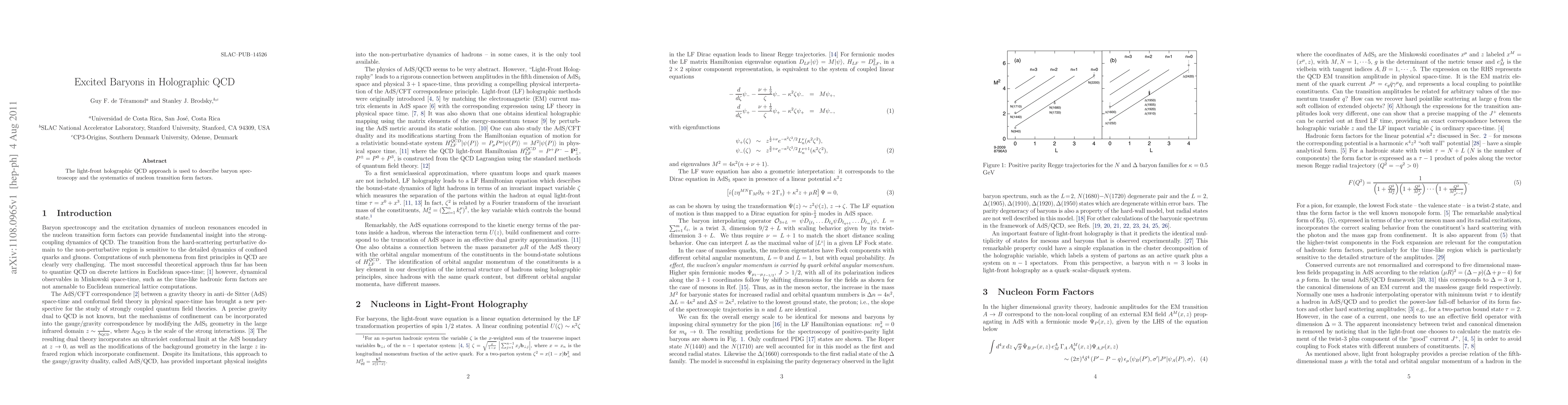 The light-front holographic QCD approach is used to describe baryon spectroscopy and the systematics of nucleon transition form factors.