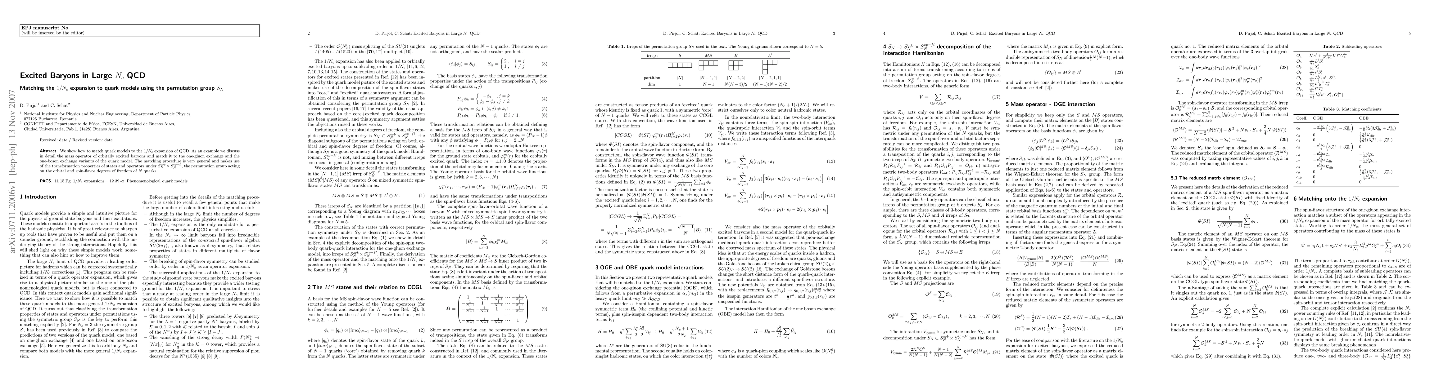 Researchers developed a method to match quark models with the 1/Nc expansion of Quantum Chromodynamics, using the permutation group S_N to describe N quarks. This allows for more accurate predictions of excited baryon masses in Large Nc QCD.
