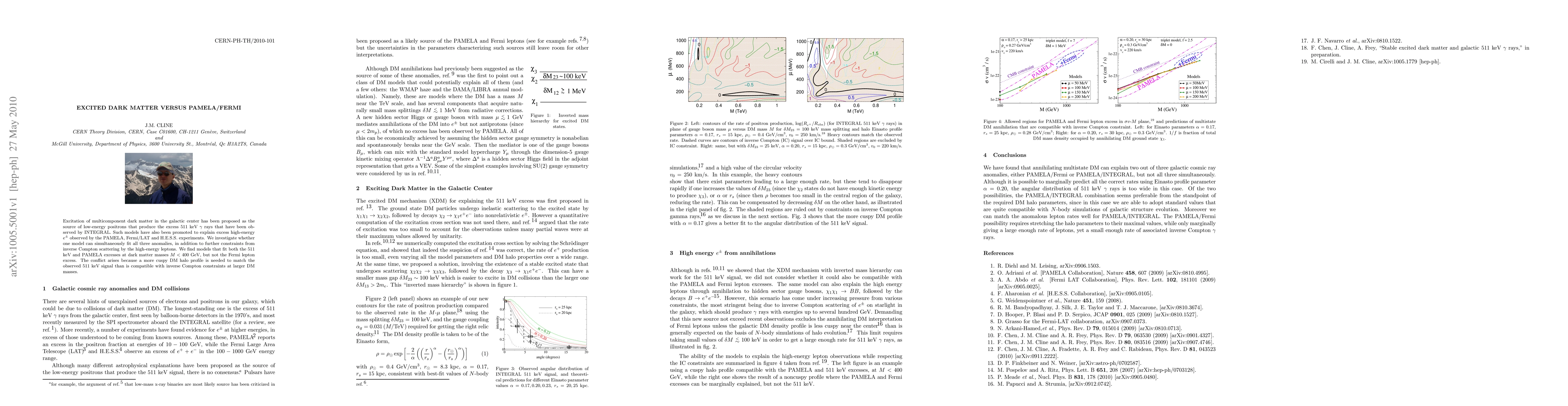 Excitation of multicomponent dark matter in the galactic center has been proposed as the source of low-energy positrons that produce the excess 511 keV gamma rays that have been observed by INTEGRAL. Such models have also been promoted to explain excess high-energy electrons/positrons observed by the PAMELA, Fermi/LAT and H.E.S.S. experiments. We investigate whether one model can simultaneously fit all three anomalies, in addition to further constraints from inverse Compton scattering by the high-energy leptons. We find models that fit both the 511 keV and PAMELA excesses at dark matter masses M < 400 GeV, but not the Fermi lepton excess. The conflict arises because a more cuspy DM halo profile is needed to match the observed 511 keV signal than is compatible with inverse Compton constraints at larger DM masses.