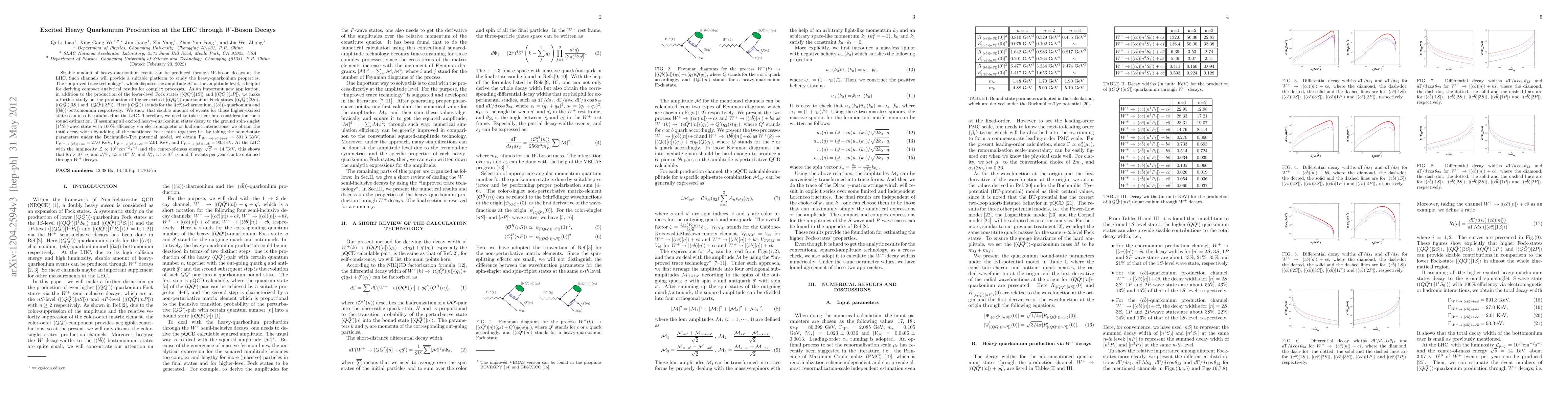 This paper investigates the production of excited heavy quarkonium states via $W$-boson decays at the LHC, employing "improved trace technology" for analytical results. It extends the study to higher-excited Fock states, showing significant production potential for these states, which must be considered for accurate estimations.
