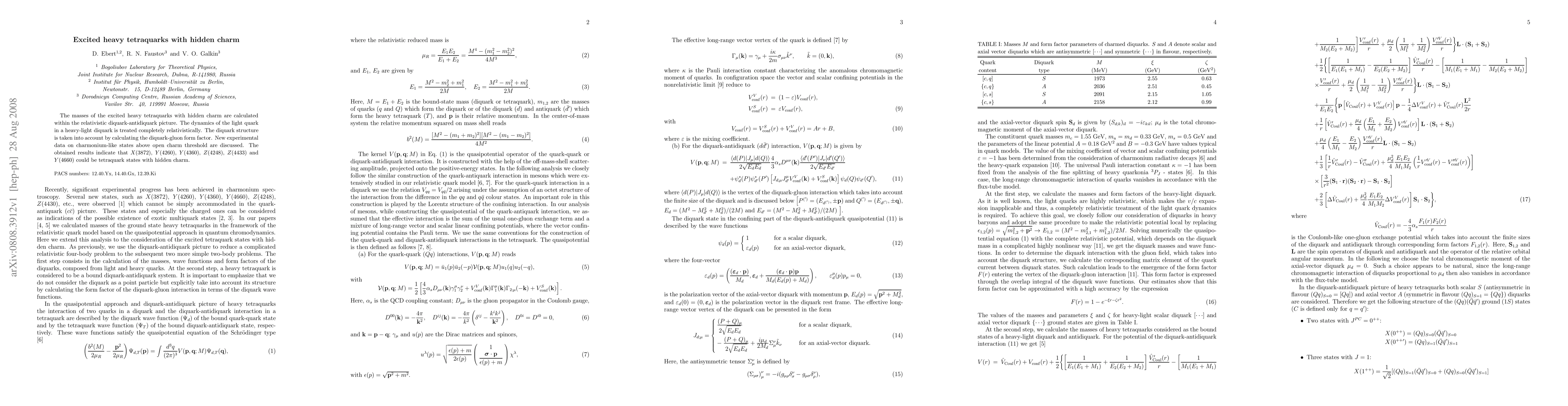 This paper calculates the masses of excited heavy tetraquarks with hidden charm using a relativistic diquark-antidiquark model, suggesting that several charmonium-like states could be tetraquarks. The study also discusses new experimental data supporting these findings.