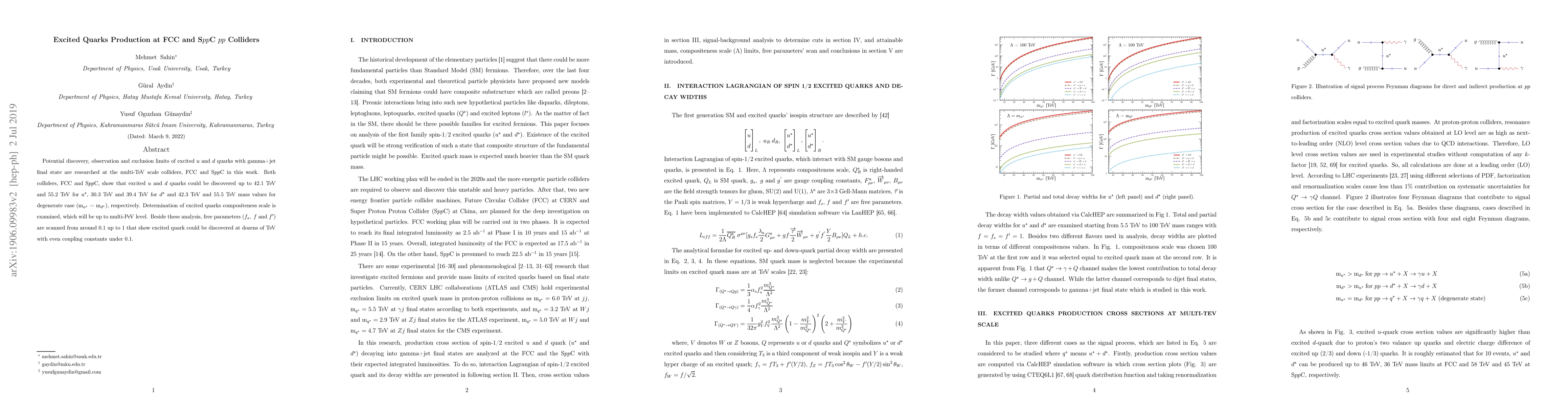 This research investigates the potential discovery of excited $u$ and $d$ quarks at FCC and S$pp$C colliders, finding that they could be detected up to 55.5 TeV. The study also explores the compositeness scale and varying coupling constants, suggesting that these quarks may be observed even with low coupling values.