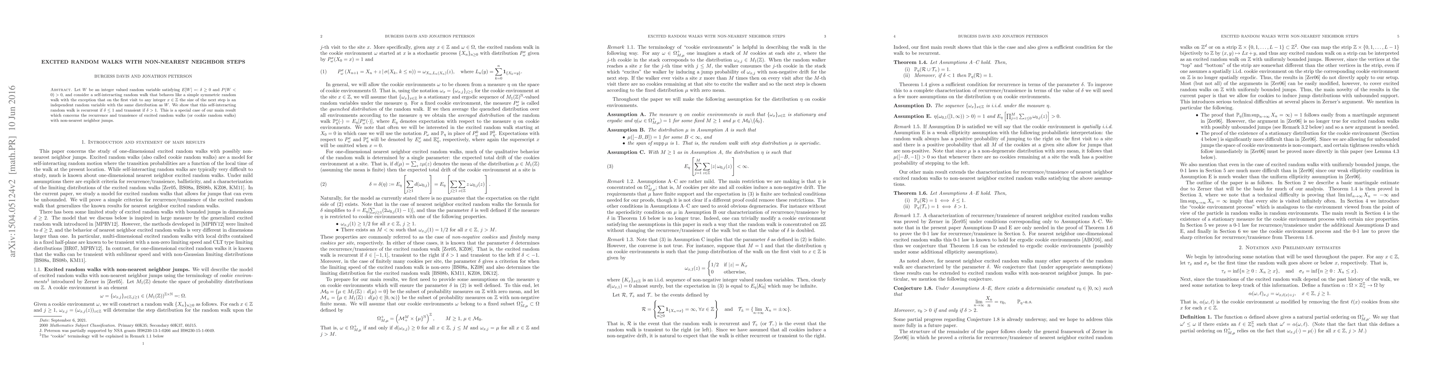 This paper studies excited random walks where the size of non-nearest neighbor steps follows a specific distribution. The authors prove that such walks are recurrent if the expected step size is less than or equal to 1, and transient if greater than 1.