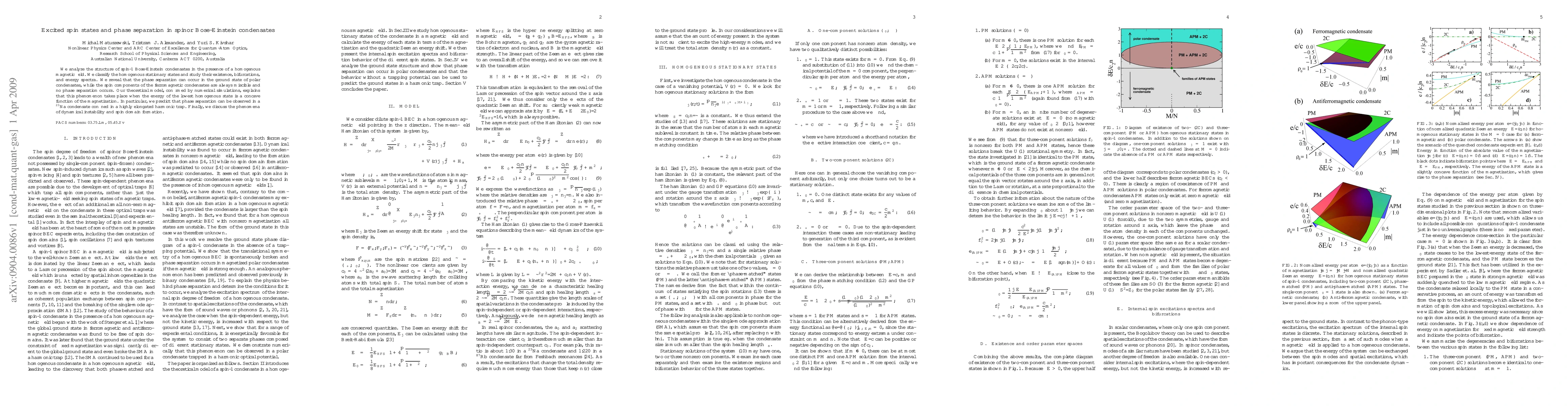 This paper investigates spin-1 Bose-Einstein condensates under a magnetic field, classifying their stationary states and revealing phase separation in polar condensates but not in ferromagnetic ones. The theoretical model, supported by simulations, predicts phase separation in $^{23}$Na condensates in elongated traps when the energy is concave with respect to magnetization.