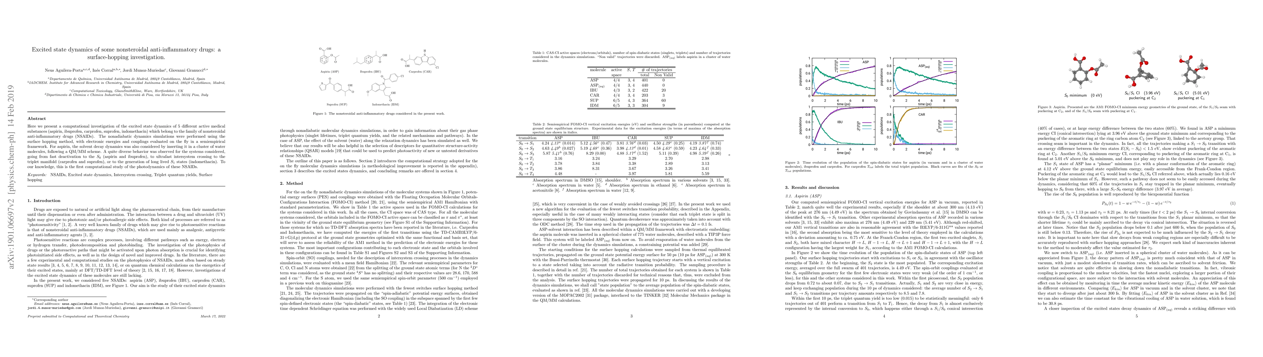 This study investigates the excited state dynamics of 5 nonsteroidal anti-inflammatory drugs using surface hopping simulations, revealing diverse behaviors ranging from fast deactivation to long-lived S1 states.