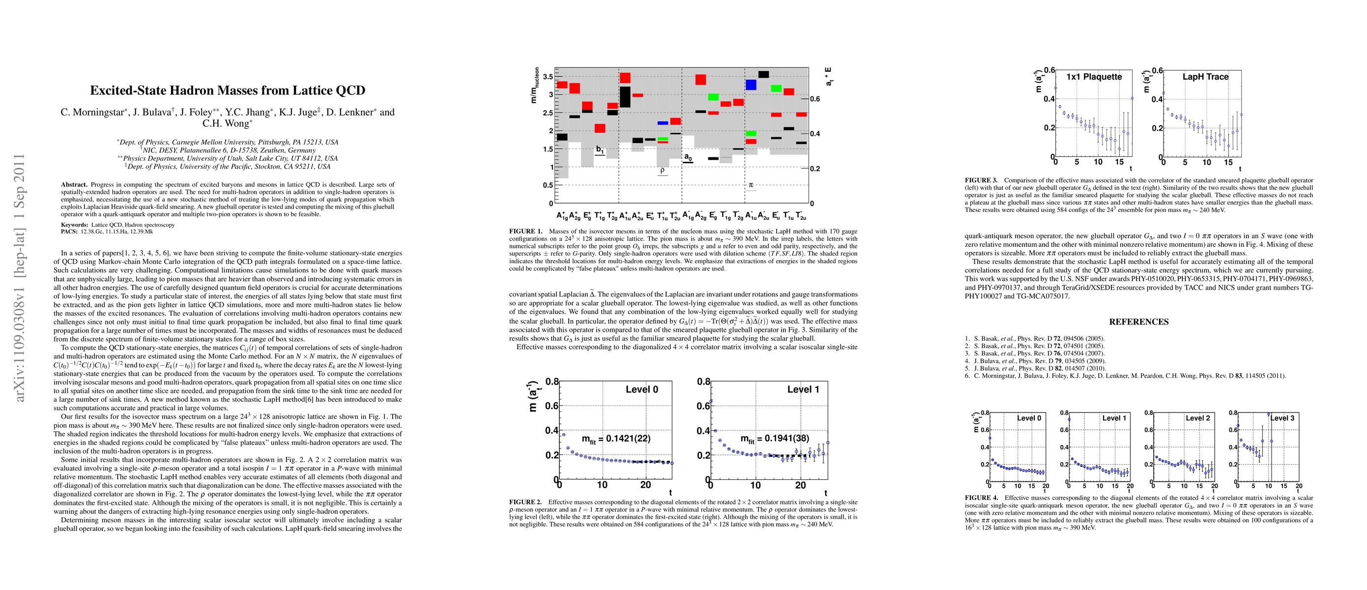 This paper discusses advancements in lattice QCD for computing the masses of excited hadrons, emphasizing the use of multi-hadron operators and a new stochastic method for low-lying quark modes. It also introduces a new glueball operator and demonstrates its feasible mixing with quark-antiquark and two-pion operators.
