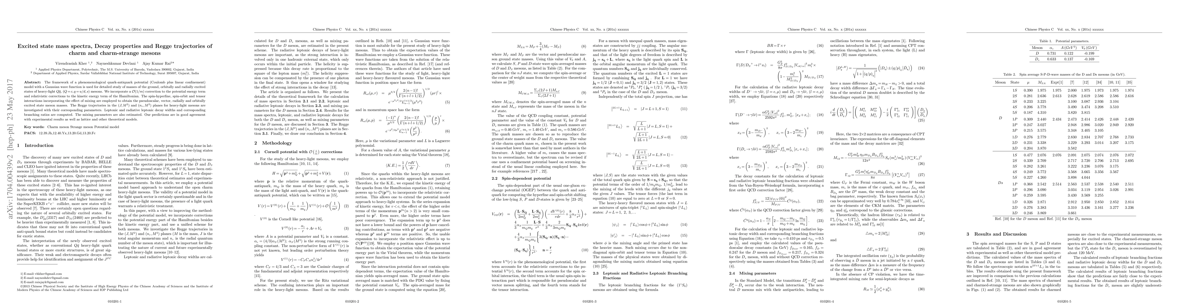 The framework of phenomenological quark-antiquark potential (Coulomb plus linear confinement) model with the Gaussian wave function is used for detailed study of masses of the ground, orbitally and radially excited states of heavy-light $Q\overline{q}$, $\left(Q=c,q=u/d,s\right)$ mesons. We incorporate $\mathcal{O}(1/m)$ correction to the potential energy term and relativistic corrections to the kinetic energy term of the hamiltonian. The spin-hyperfine, the spin-orbit and the tensor interactions incorporating the effect of mixing are employed to obtained the pseudoscalar, the vector, radially and orbitally excited states meson masses. The Regge trajectories in the $(J,M^{2})$ and $(n_r,M^{2})$ planes for heavy-light meson are investigated with their corresponding parameters. Leptonic and radiative leptonic decay widths and corresponding branching ratios are computed. The mixing parameters are also estimated in the present work. Our predictions are in good agreement with experimental results as well as lattice and other theoretical models.