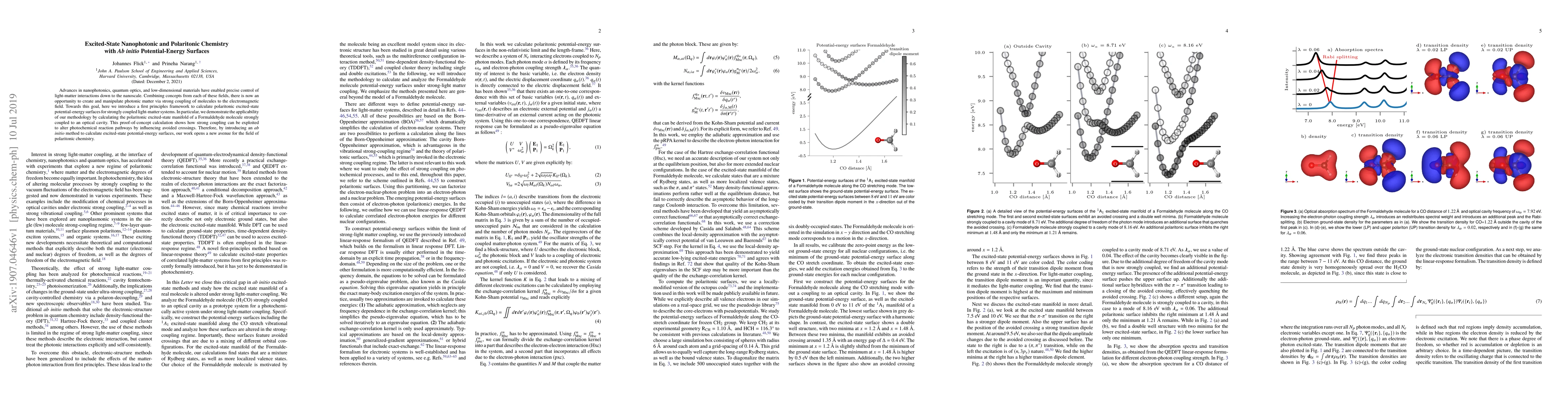 Advances in nanophotonics, quantum optics, and low-dimensional materials have enabled precise control of light-matter interactions down to the nanoscale. Combining concepts from each of these fields, there is now an opportunity to create and manipulate photonic matter via strong coupling of molecules to the electromagnetic field. Towards this goal, here we introduce a first principles framework to calculate polaritonic excited-state potential-energy surfaces for strongly coupled light-matter systems. In particular, we demonstrate the applicability of our methodology by calculating the polaritonic excited-state manifold of a Formaldehyde molecule strongly coupled to an optical cavity. This proof-of-concept calculation shows how strong coupling can be exploited to alter photochemical reaction pathways by influencing avoided crossings. Therefore, by introducing an ab initio method to calculate excited-state potential-energy surfaces, our work opens a new avenue for the field of polaritonic chemistry.