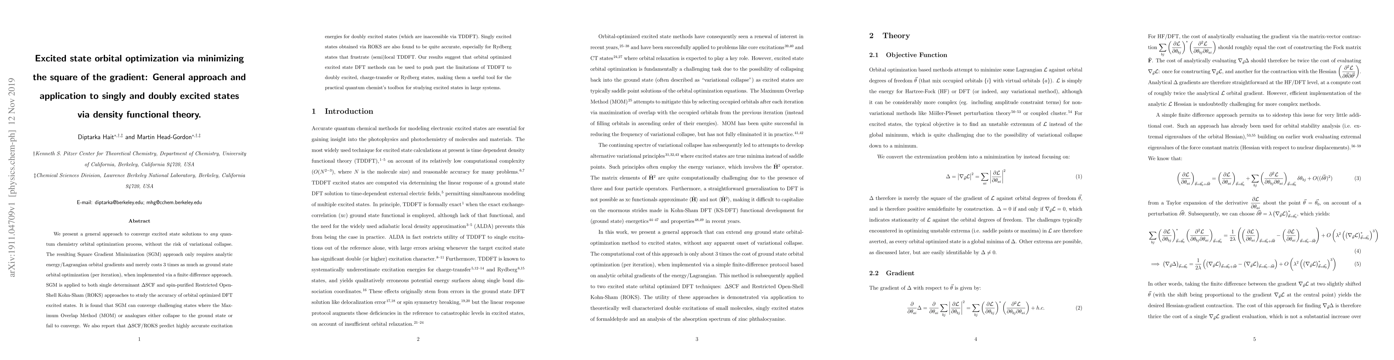 This paper introduces a Square Gradient Minimization (SGM) approach for optimizing orbitals in excited states, which avoids variational collapse and costs only three times as much as ground state optimization. SGM is applied to both single determinant and spin-purified open-shell DFT methods, demonstrating its effectiveness in converging challenging states and predicting accurate excitation energies for doubly excited states, especially for Rydberg states.