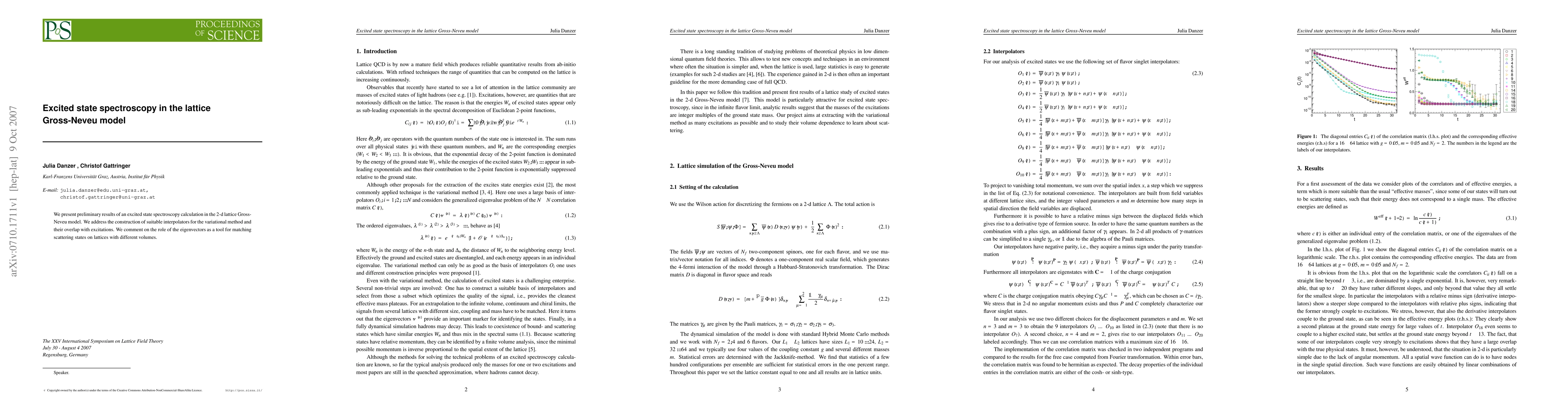 Researchers conducted excited state spectroscopy in a 2D lattice model to study particle interactions, finding useful interpolators for matching scattering states across different volumes.
