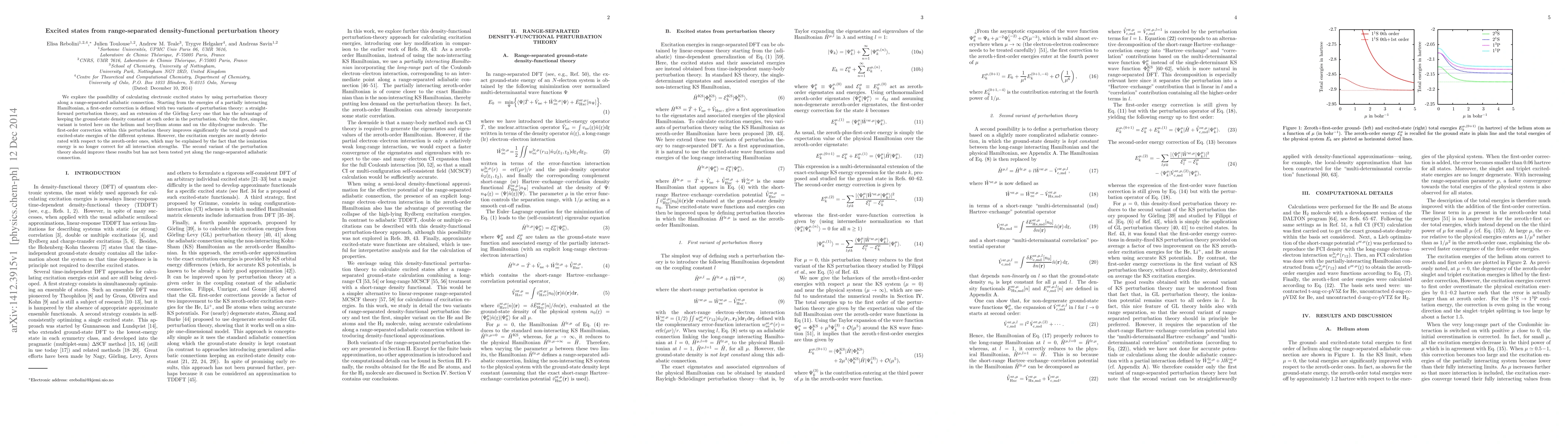 This paper investigates a range-separated density-functional perturbation theory for calculating electronic excited states, showing improved ground-state energies but deteriorated excitation energies. The first-order correction method is tested on helium, beryllium, and dihydrogen, while a more advanced variant that maintains ground-state density constancy remains untested.