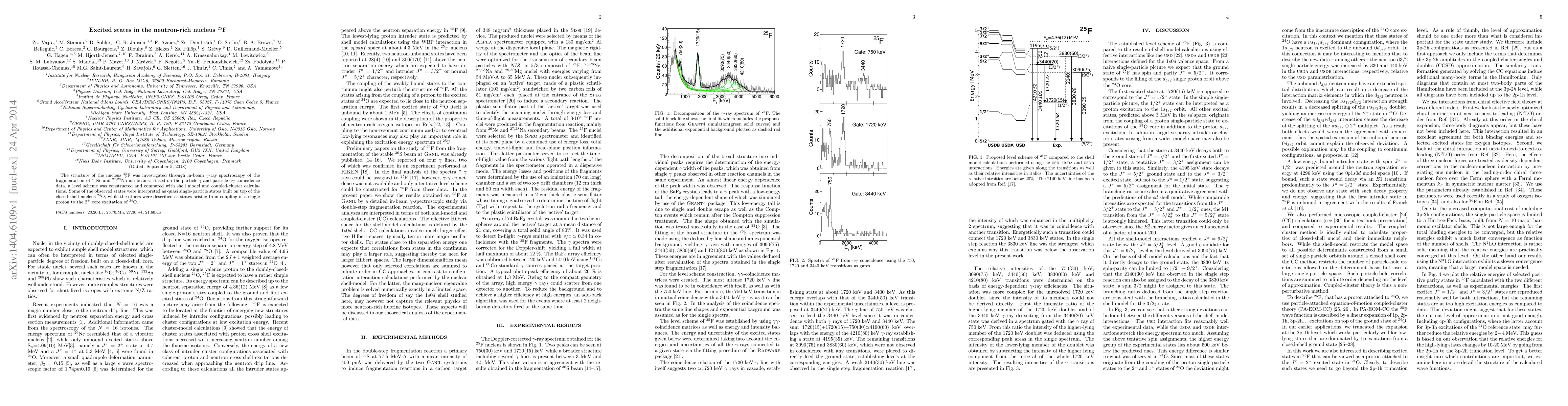 The structure of the nucleus 25F was investigated through in-beam {\gamma}-ray spectroscopy of the fragmentation of 26Ne and 27,28Na ion beams. Based on the particle-{\gamma} and particle-{\gamma}{\gamma} coincidence data, a level scheme was constructed and compared with shell model and coupled-cluster calculations. Some of the observed states were interpreted as quasi single-particle states built on top of the closed-shell nucleus 24O, while the others were described as states arising from coupling of a single proton to the 2+ core excitation of 24O.