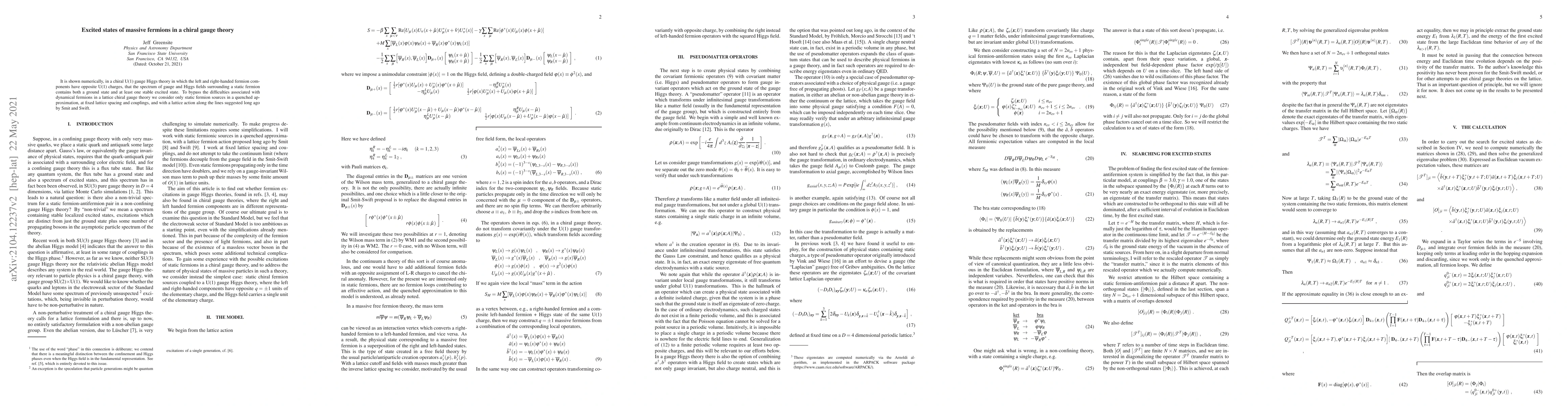It is shown numerically, in a chiral U(1) gauge Higgs theory in which the left and right-handed fermion components have opposite U(1) charges, that the spectrum of gauge and Higgs fields surrounding a static fermion contains both a ground state and at least one stable excited state. To bypass the difficulties associated with dynamical fermions in a lattice chiral gauge theory we consider only static fermion sources in a quenched approximation, at fixed lattice spacing and couplings, and with a lattice action along the lines suggested long ago by Smit and Swift.