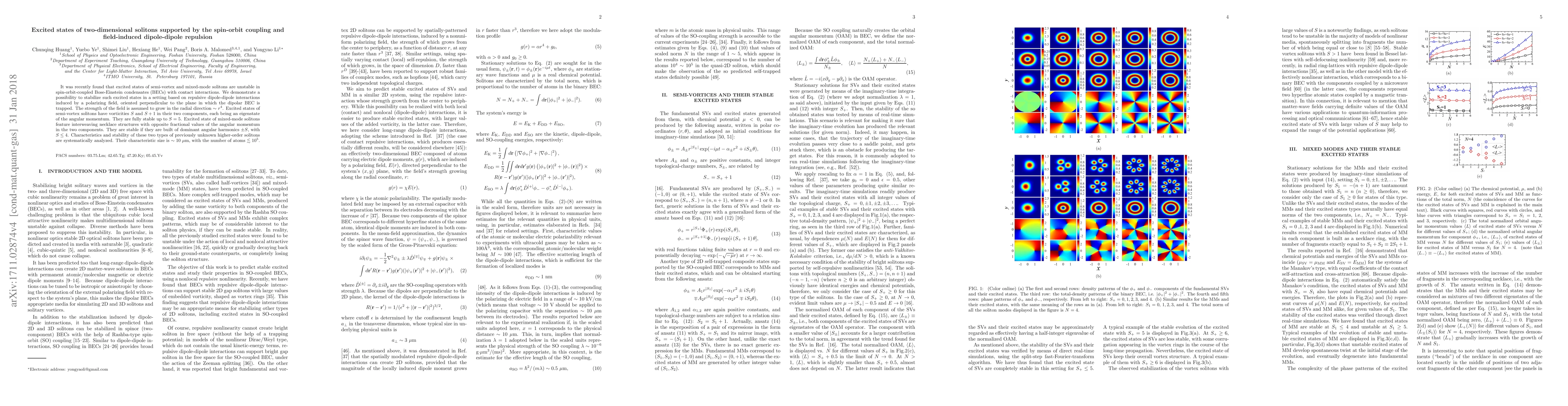 Research demonstrates that excited states of two-dimensional solitons can be stabilized in a dipole-dipole BEC setting with a polarizing field, allowing for the creation of new higher-order solitons.