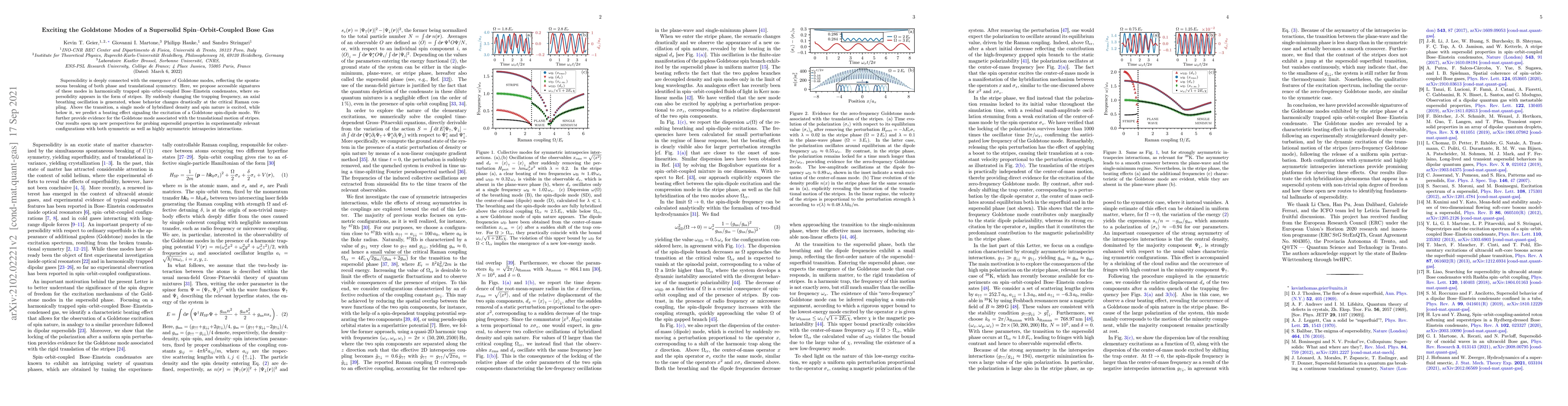 The research proposes signatures of Goldstone modes in spin-orbit-coupled Bose-Einstein condensates, indicating supersolidity through stripe formations. By altering trapping frequencies, distinct oscillation behaviors above and below the critical Raman coupling reveal hybridized density-spin and Goldstone spin-dipole modes, respectively. This method offers experimental insights into supersolid properties under varying interaction conditions.