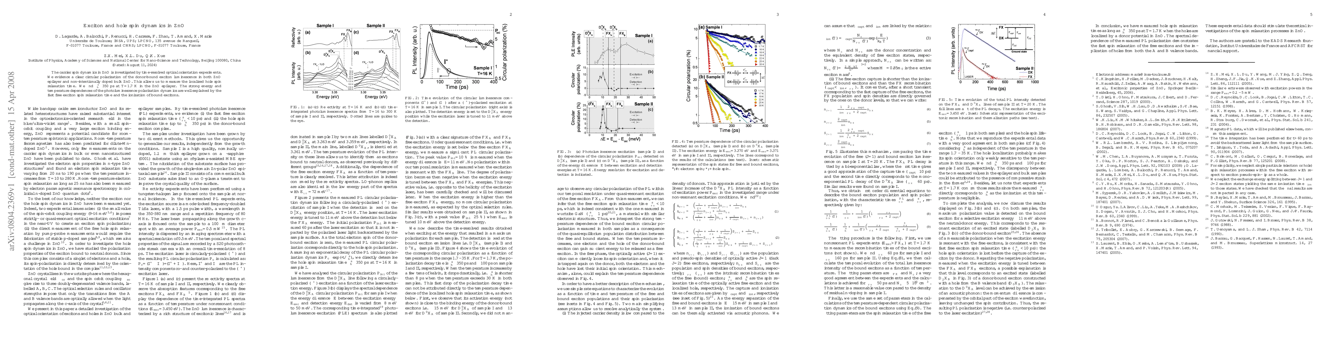 This paper investigates the spin dynamics of carriers in ZnO using time-resolved optical orientation experiments, revealing a circular polarization of donor-bound exciton luminescence. The localized hole spin relaxation time is measured to be approximately 350 ps at 1.7 K, with strong energy and temperature dependences explained by fast free exciton spin relaxation and the ionization of bound excitons.