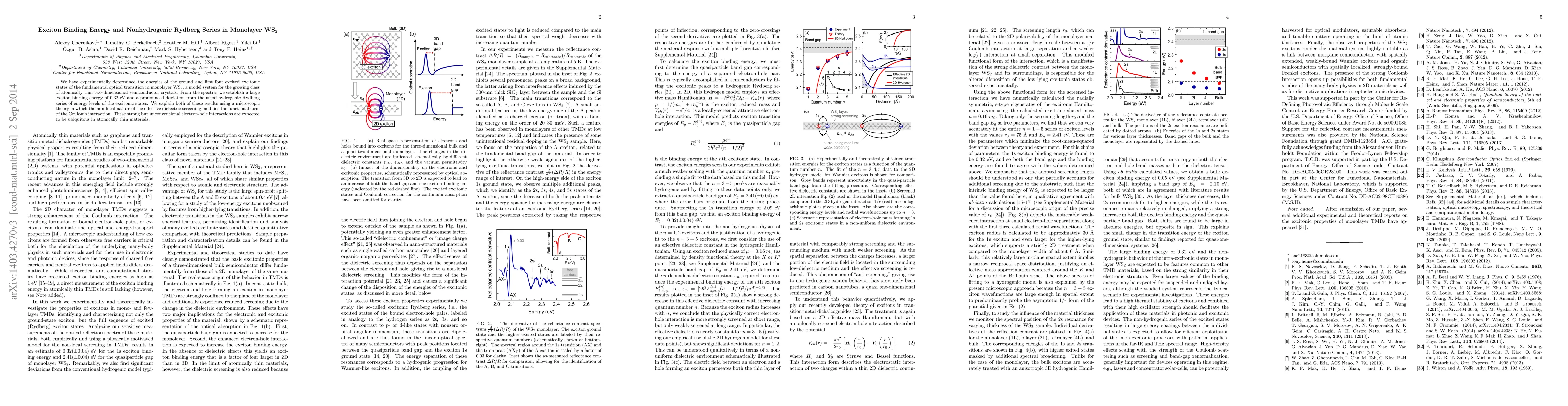 The research determines a large exciton binding energy of 0.32 eV in monolayer WS2, revealing deviations from the typical hydrogenic Rydberg series due to non-local dielectric screening effects, suggesting unconventional electron-hole interactions in thin materials.