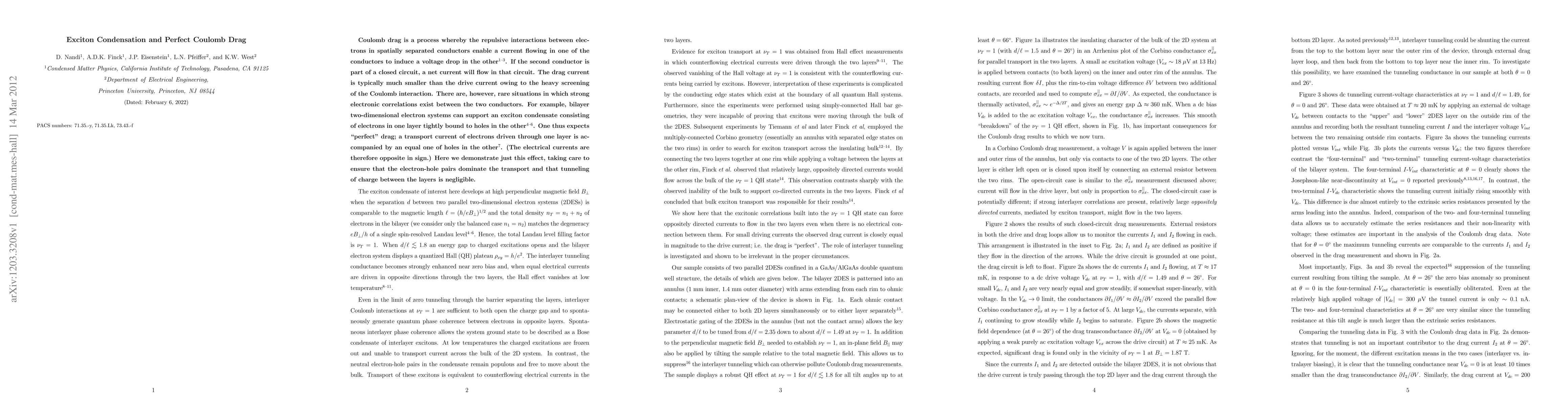 This research demonstrates "perfect" Coulomb drag in bilayer two-dimensional electron systems, where an exciton condensate leads to equal currents of electrons and holes, despite typical heavy screening effects, ensuring negligible charge tunneling.