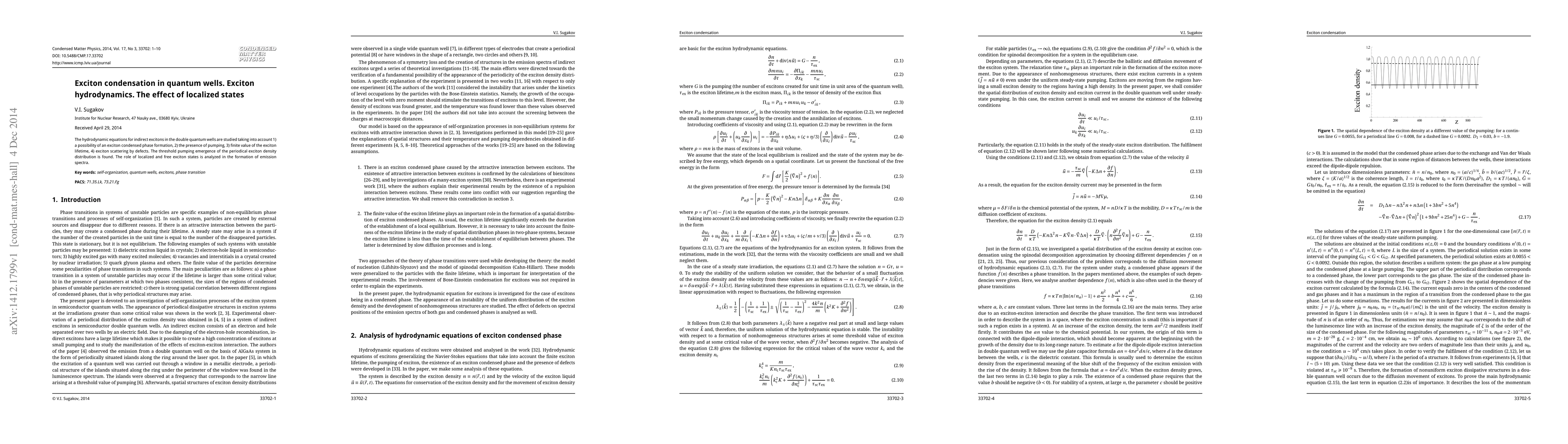 This paper investigates hydrodynamic equations for indirect excitons in double quantum wells, focusing on exciton condensation, pumping effects, finite exciton lifetime, and scattering by defects. It finds a threshold pumping that leads to a periodic exciton density distribution and analyzes the roles of localized and free exciton states in emission spectra formation.