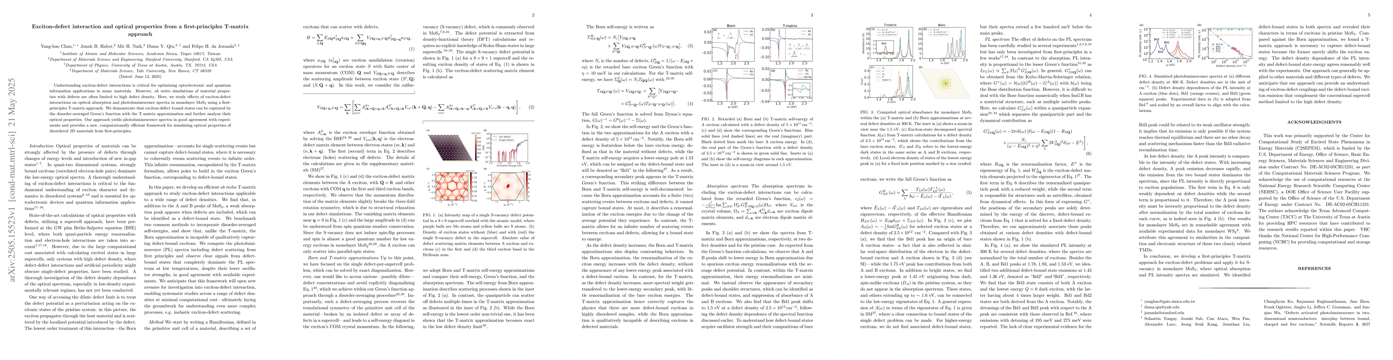 Development of a first-principles T-matrix approach for accurately simulating exciton-defect interactions and their optical properties in disordered 2D materials.