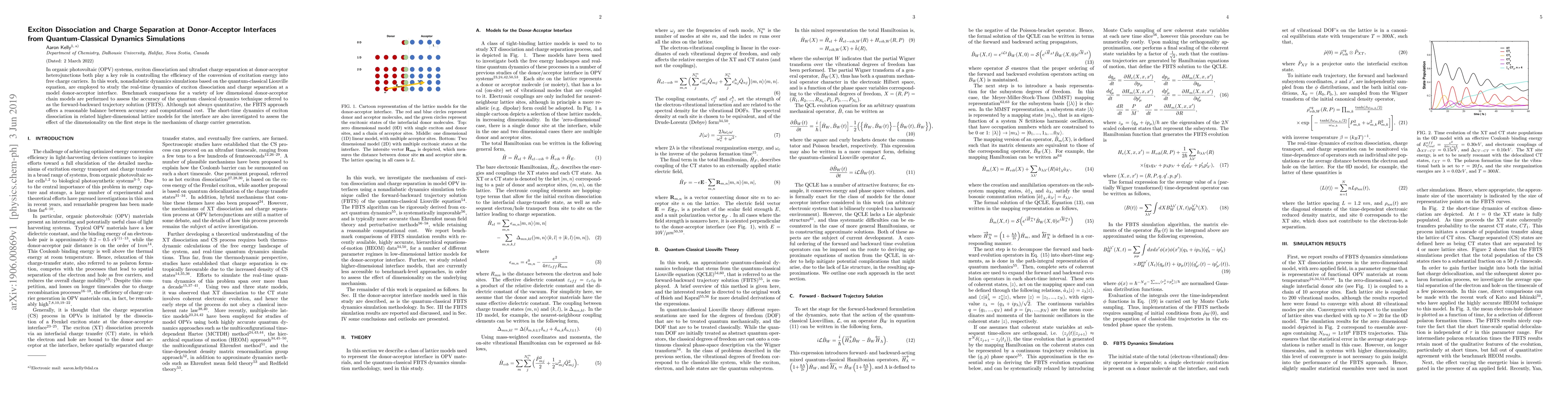 This research utilizes quantum-classical dynamics simulations to investigate exciton dissociation and charge separation at donor-acceptor interfaces in organic photovoltaic systems, focusing on the accuracy of the forward-backward trajectory solution method and the impact of interface dimensionality on initial charge carrier generation processes.