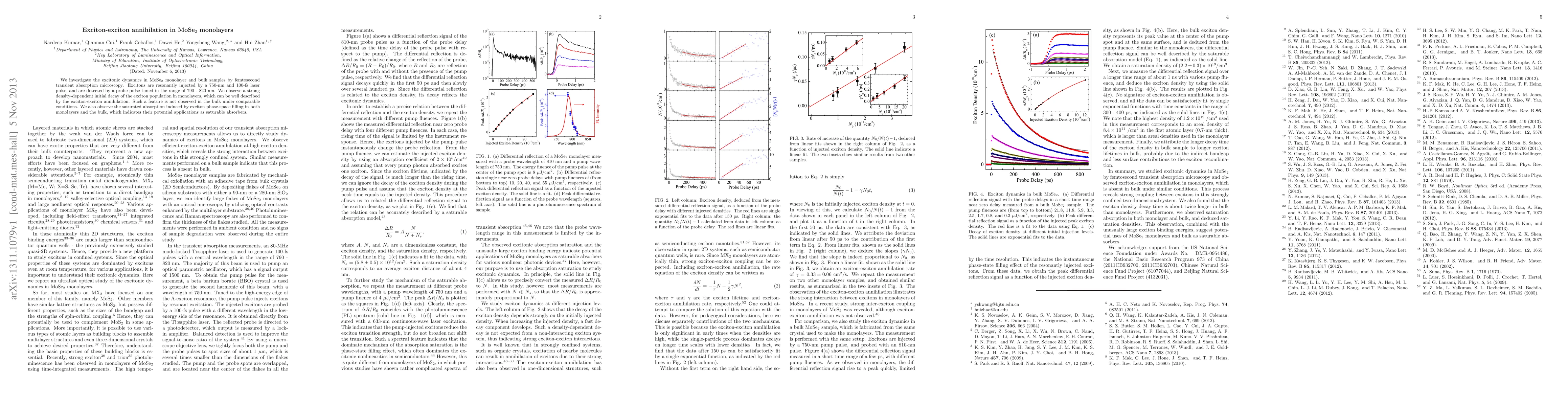 This study investigates exciton dynamics in MoSe2 monolayers and bulk samples using femtosecond transient absorption microscopy, revealing strong density-dependent exciton-exciton annihilation in monolayers, absent in bulk, and potential for use as saturable absorbers due to exciton phase-space filling.
