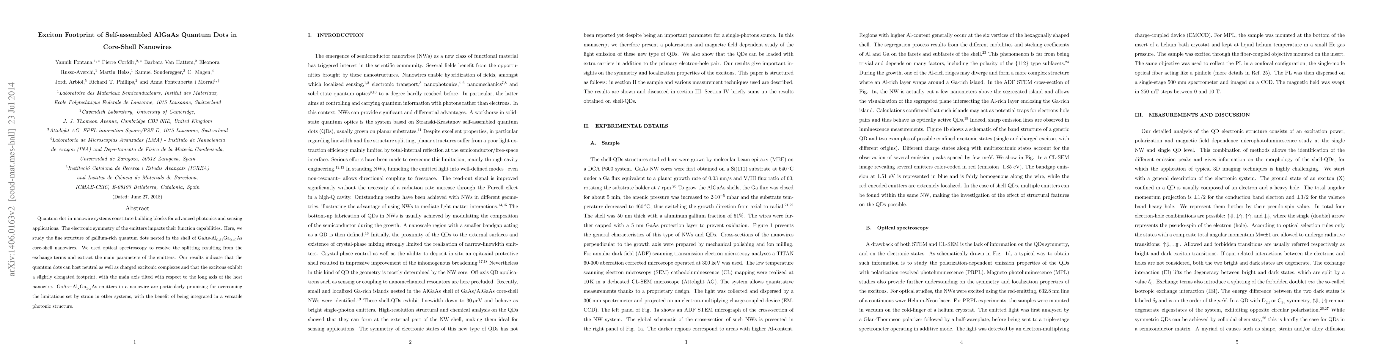 This study investigates the exciton structure in gallium-rich quantum dots within GaAs-AlGaAs core-shell nanowires using optical spectroscopy, revealing a slightly elongated exciton footprint tilted from the growth axis. The findings suggest these emitters can host both neutral and charged excitons, promising for advanced photonics and sensing applications.